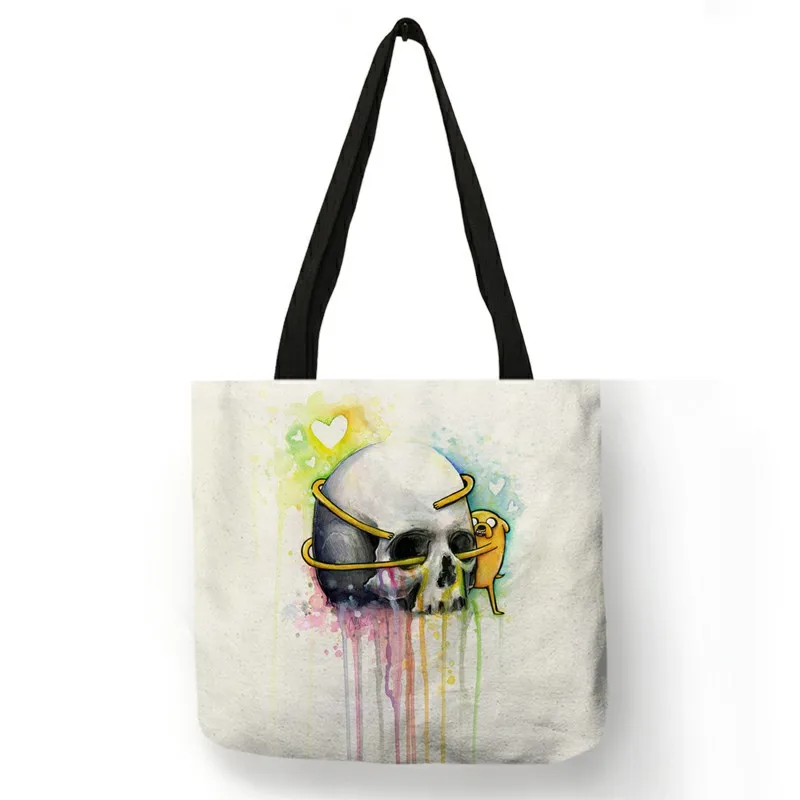 B13125 Акварельная живопись черепа женские сумки Льняная Ткань сумка для покупок путешествия складная