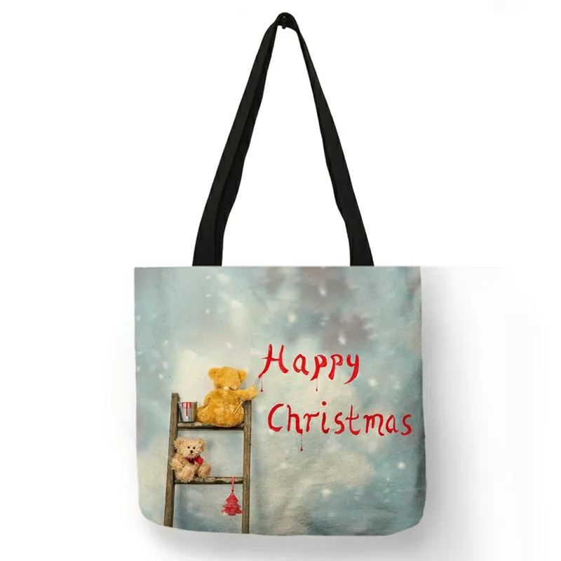 B13119 зимняя сумка-тоут с принтом снеговика, серия снеговика, Женская Повседневная сумка через плечо для покупок