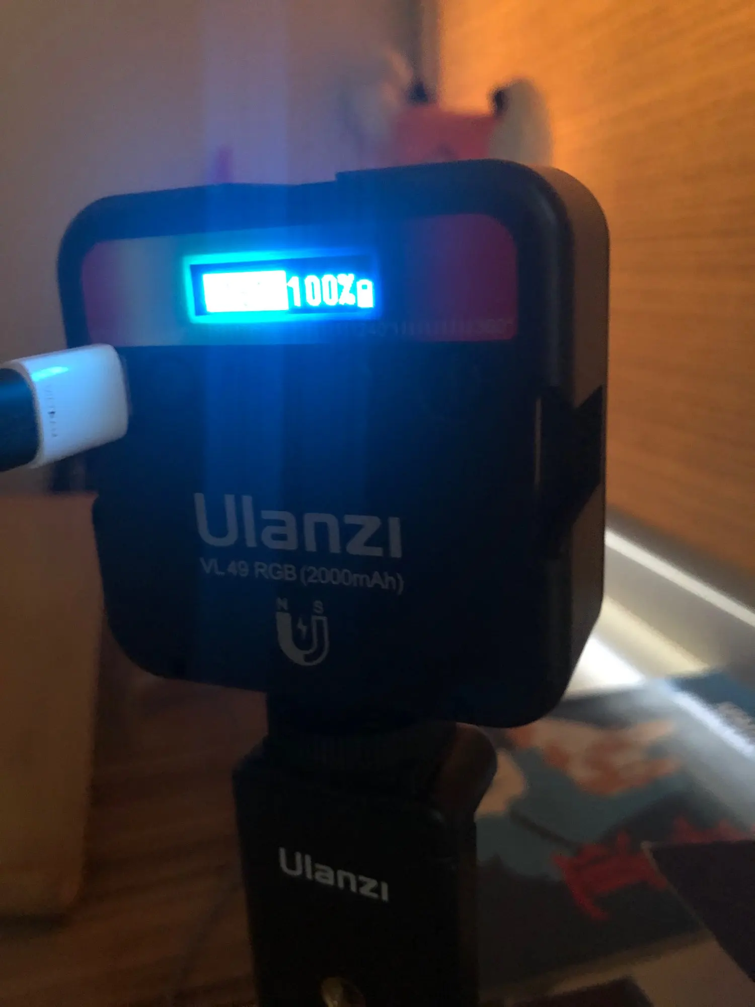 Получил лампочку в срок. Пока что не проверял как заряжается. Но фон подсвечивает отлично, как раз для этих целей и брал. Магнитится к металлу и холодильнику ;) Купил вместе с креплением, использую вместе с триногой от стабилизатора.