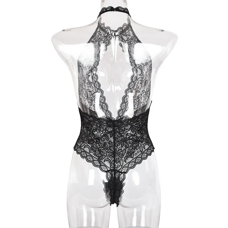 Черное Кружевное боди, женское эротическое белье, комбинезон с лямк...