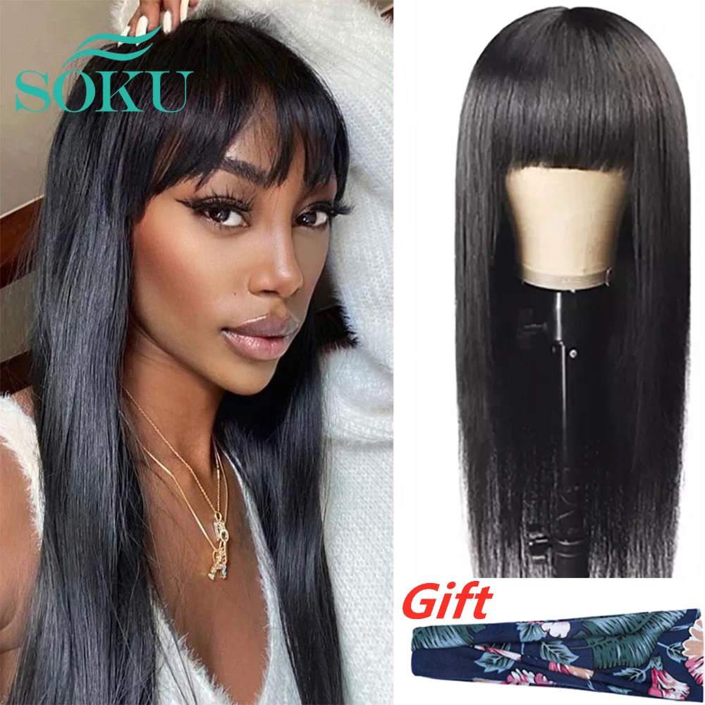 Синтетический парик с челкой, Длинные прямые парики, натуральный цвет, средняя часть, повседневный стиль, волосы SOKU, термостойкие волосы для чернокожих женщин