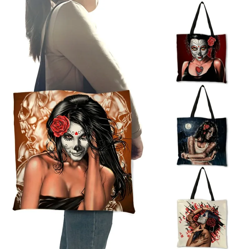 Сумка через плечо для женщин, новинка 2020, сумка-тоут с принтом черепа и девушки, многофункциональная большая емкость B13120