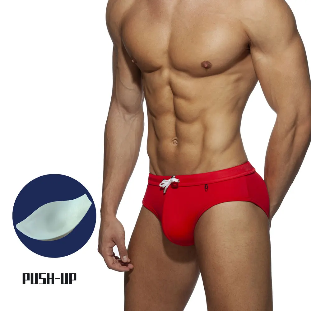 Купальник мужской с подкладкой, пикантный купальник с эффектом пениса, контрастных цветов, пляжные шорты для серфинга, лето 2020