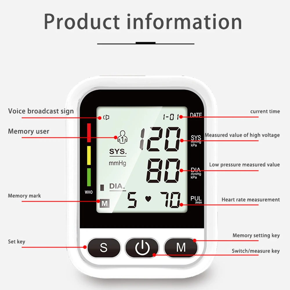 Сфигмоманометр ручной автоматический с ЖК-дисплеем, тонометр и пульсометр для измерения артериального давления, забота о здоровье