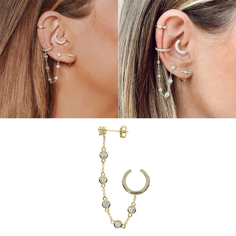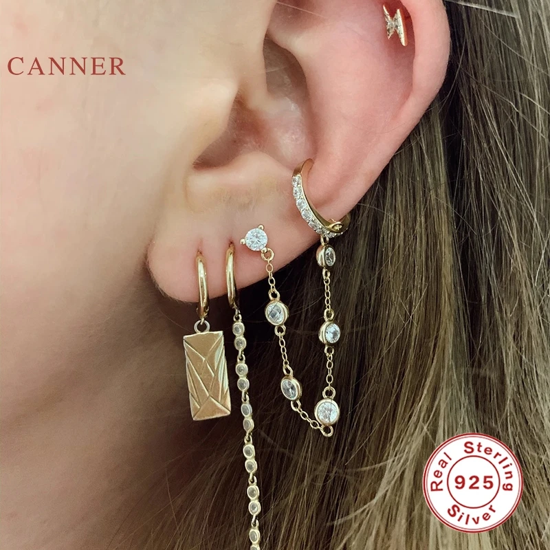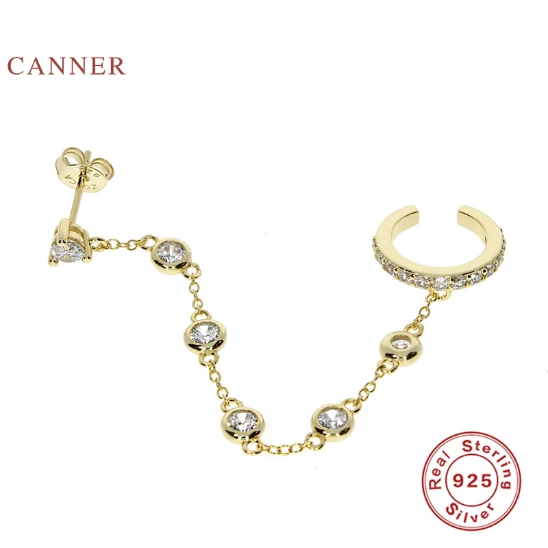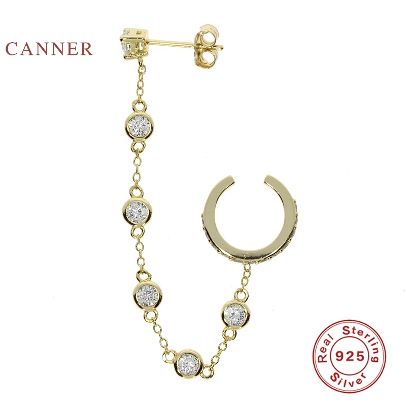 Женские серьги CANNER, Настоящее серебро 925 пробы, европейский и американский тренд, модные серьги-клипсы с цепочкой, ювелирные изделия из циркона