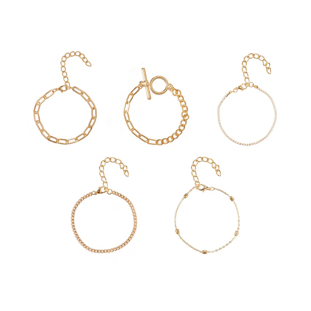 5 шт.компл. Панк Золотой Кристалл Толстый Браслет-цепочка женский б...