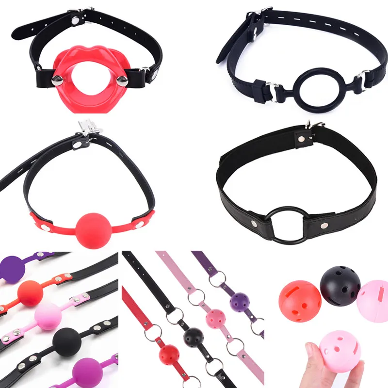 Кляп-мяч для женщин, для пар, кожа, 13 видов стилей фиксация рта, мягкий флирт, секс-игрушки, взрослые игры, рабский кляп в рот