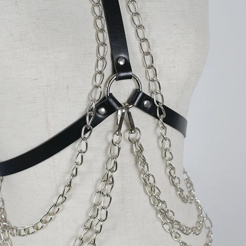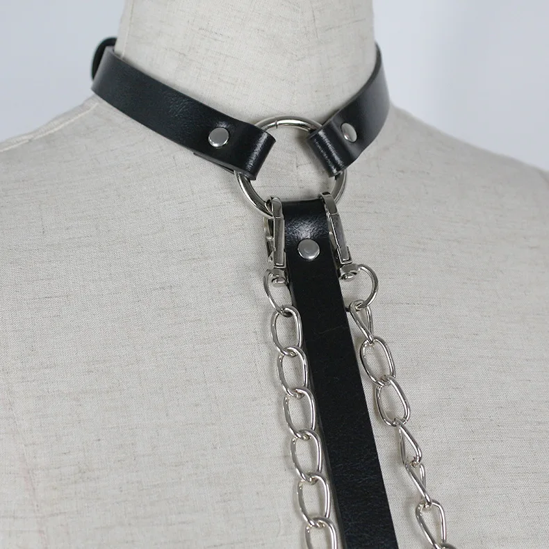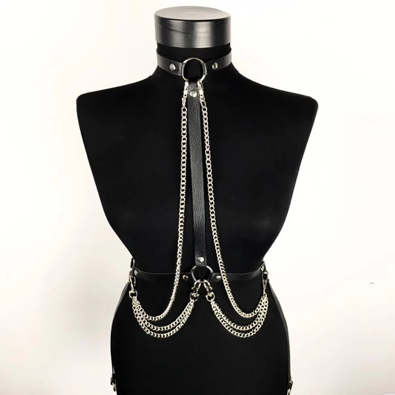 Кожаное нижнее белье, сексуальный бюстгальтер на бретельках, БДСМ, воротник, цепочка, ремень для тела, подвязки для женщин, подвязки, Intimo, сексуальный эротический укороченный топ
