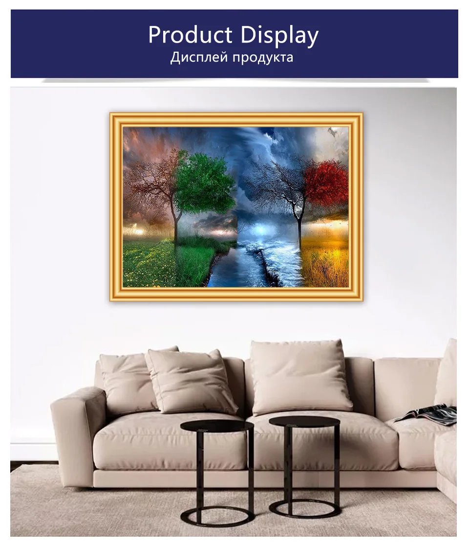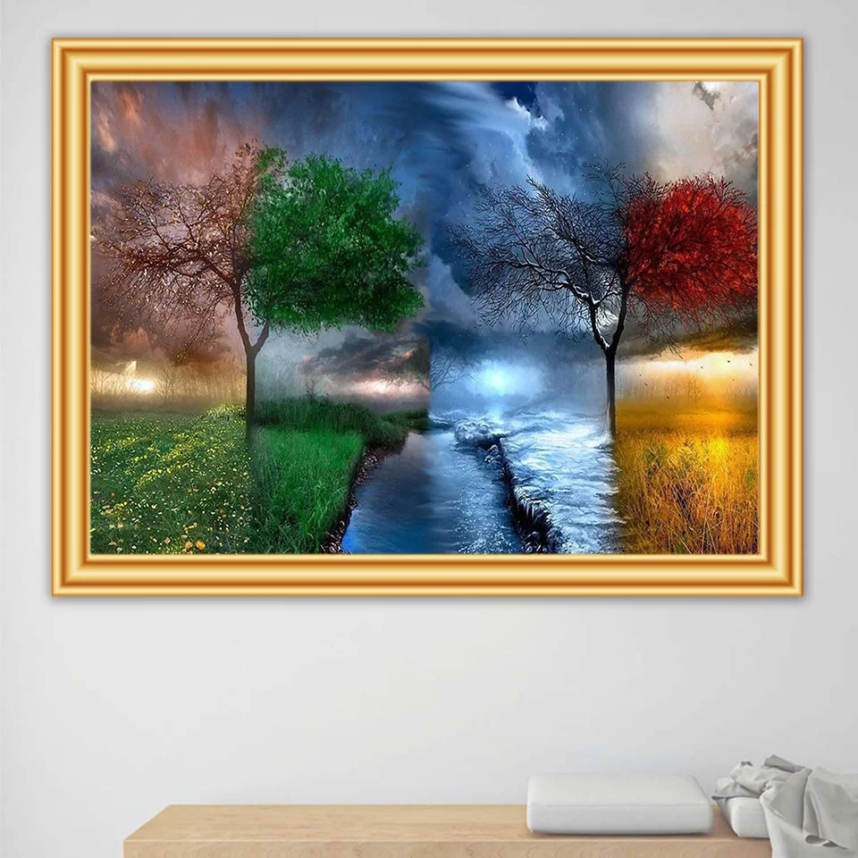 5D DIY алмазная живопись четыре сезона дерево Пейзаж Вышивка крестиком полная Алмазная вышивка мозаика картина Стразы Декор