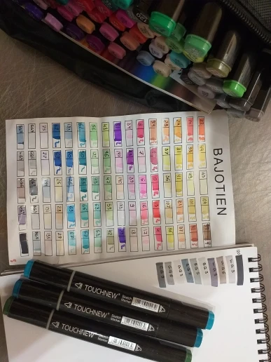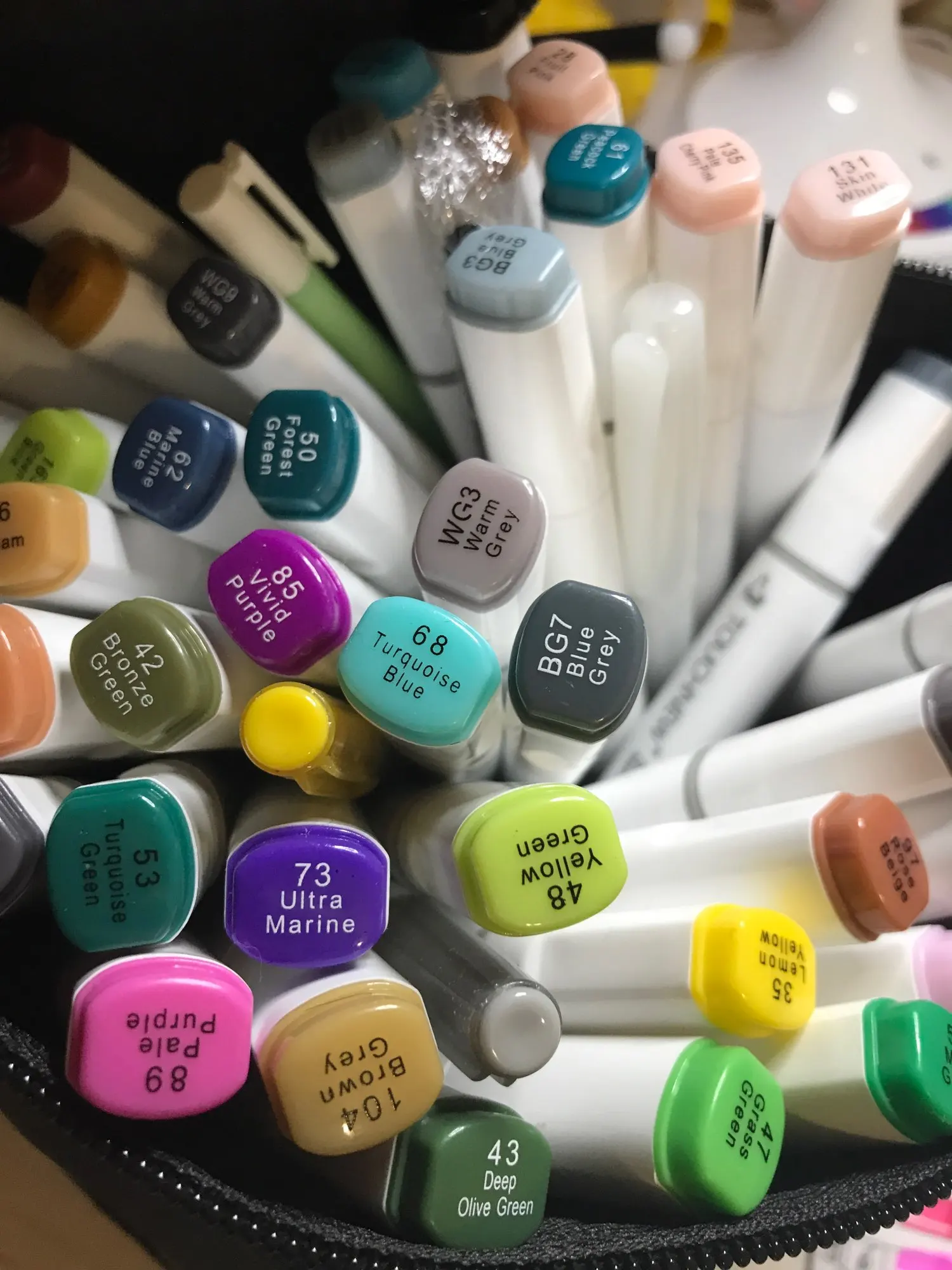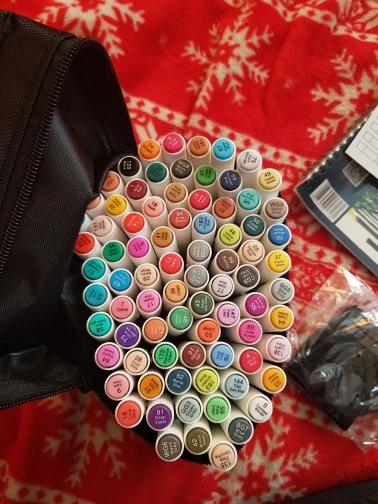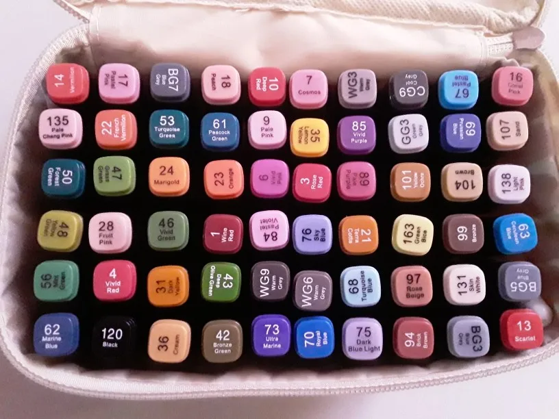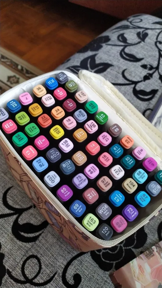 Довольна заказом! Всегда мечтала о маркерах) Заказала 60 штук. Оттенки на колпачке и на бумаге совпадают. Чехол для маркеров бомбезный!! В подарок пришли блокнот и два лайнера (белый и черный). Всем советую!
