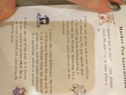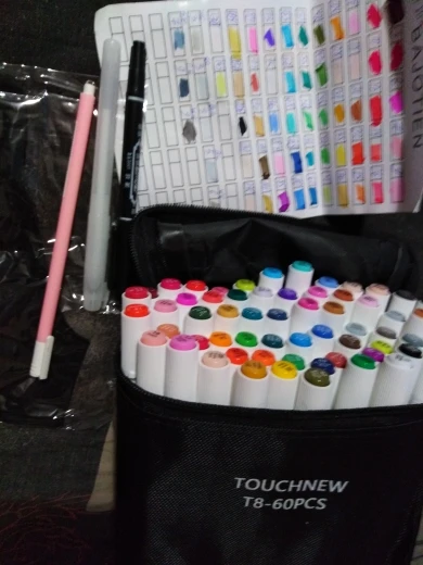 Маркеры очень классные!все свежие заправленные!!плюс продавец положил много ручек(Серебро золото чёрную белую и .тд)перчатка и мини альбом!заказом безумно довольна! пришёл через 5 дней !Спасибо!