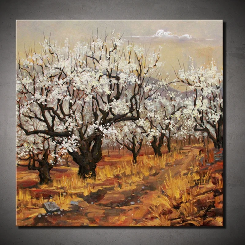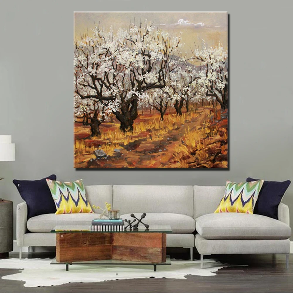 Современная ручная роспись, ландшафт, груша, дерево, цветы, цветение, масляная живопись, холст, Настенная роспись, картина, украшение (без рамки)