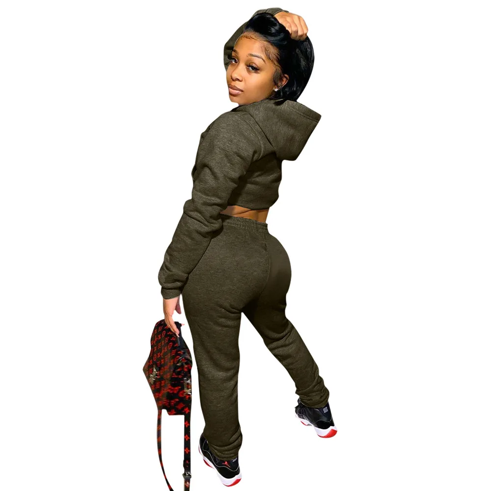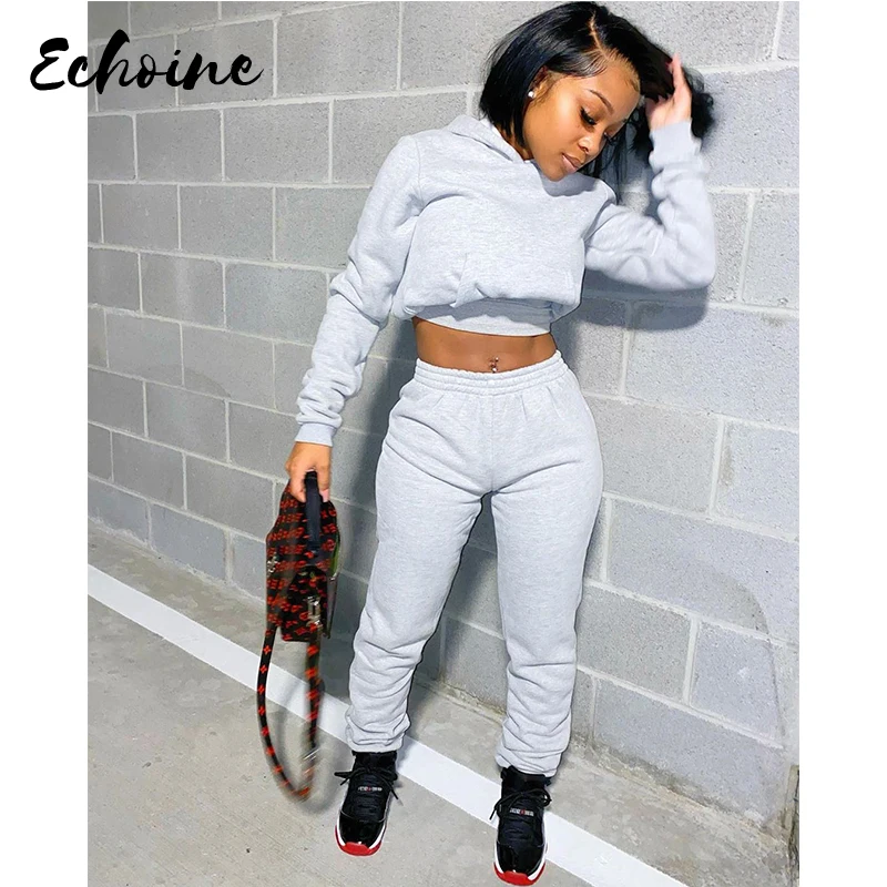 Женский комплект из двух предметов, наряд с капюшоном, толстовка, спортивный костюм, теплый спортивный короткий топ с капюшоном и длинными рукавами и спортивные штаны
