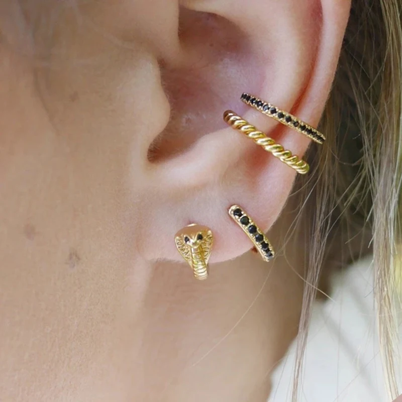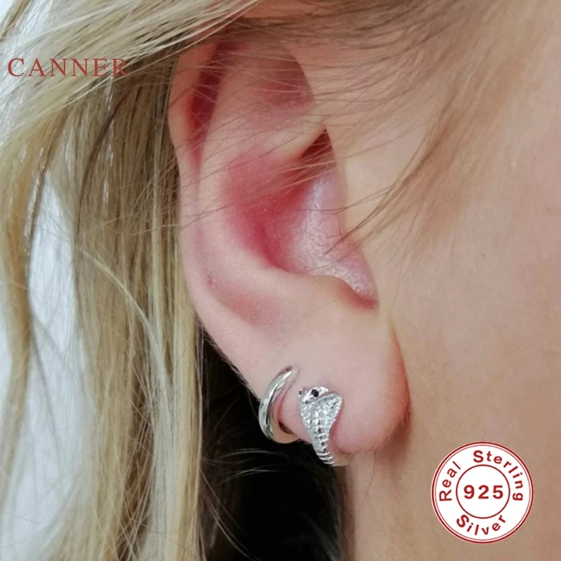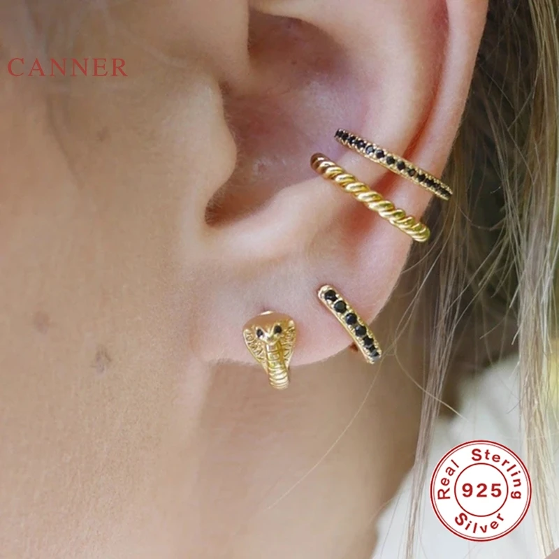 Женские серьги-кобры CANNER, Настоящее серебро 925 пробы, черные серьги-кобры с бриллиантами, корейский Серебряный ювелирный набор из золота