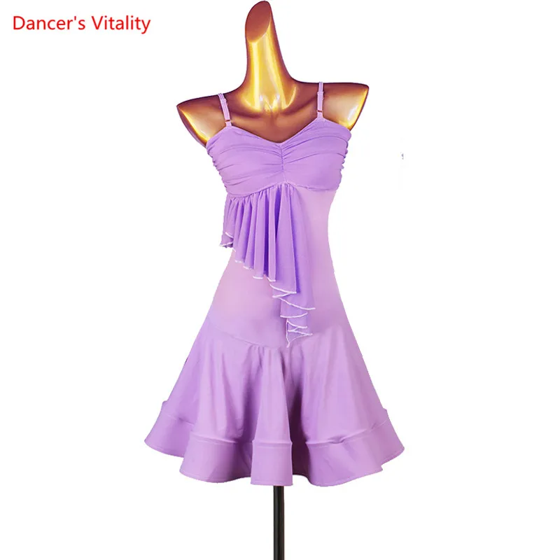 Платье для латиноамериканских танцев, сетчатая юбка на бретельках, одежда для выступлений, одежда на заказ для танцев румбы, женская одежда для детей и взрослых для соревнований