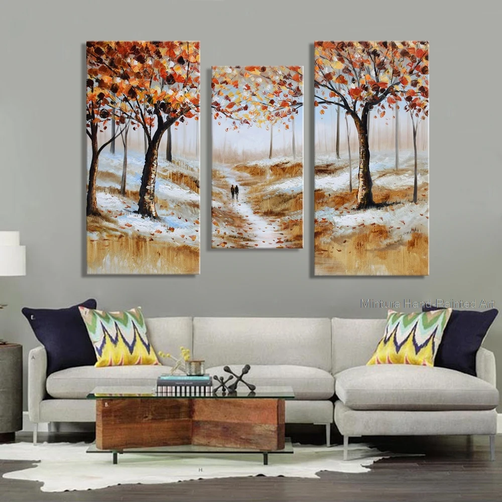 Картина маслом, большая, ручная работа, холст для влюбленных, ходячие леса, Осенний пейзаж, комбинация, Настенная картина, Декор
