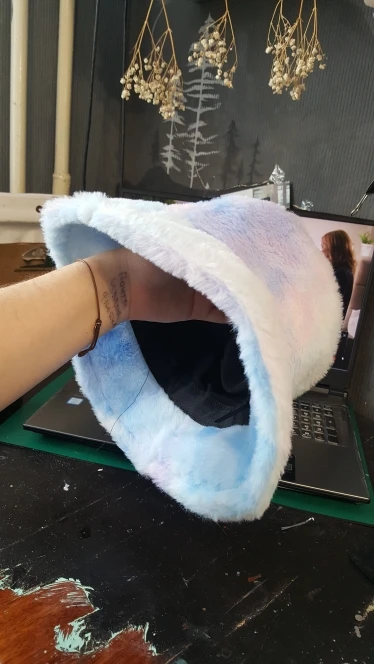 Доставка в Польшу занимает более одного месяца. Цвета красивые, ведро не толстое-это хорошо, потому что голова не выглядит большой. Плюш снаружи шляпы, а не внутри, поэтому он не будет гореть. Нравится