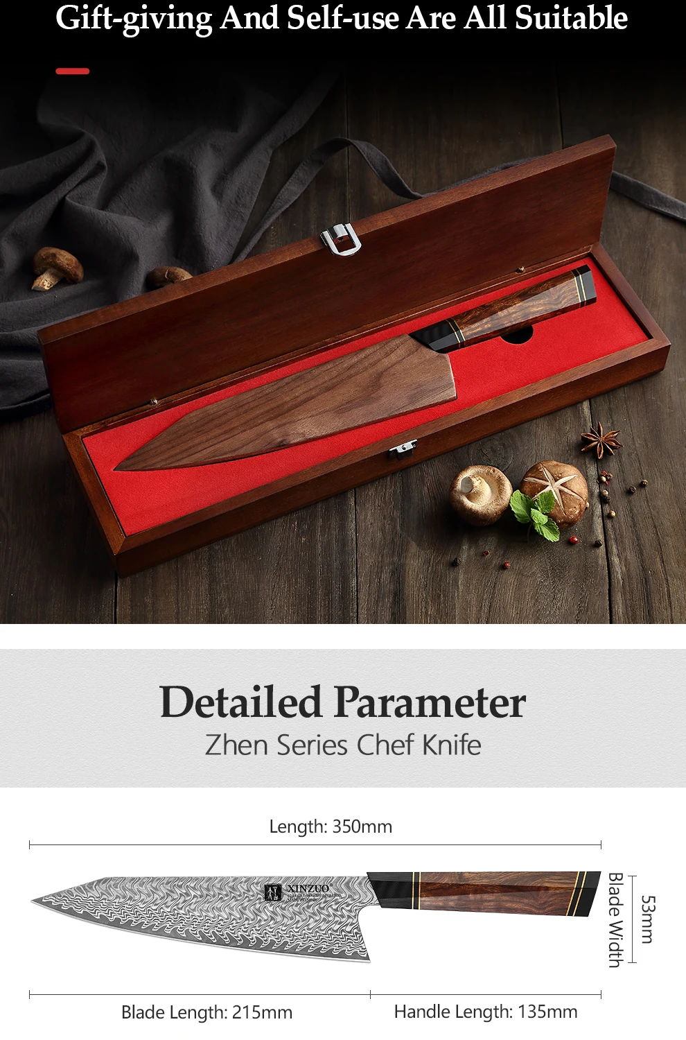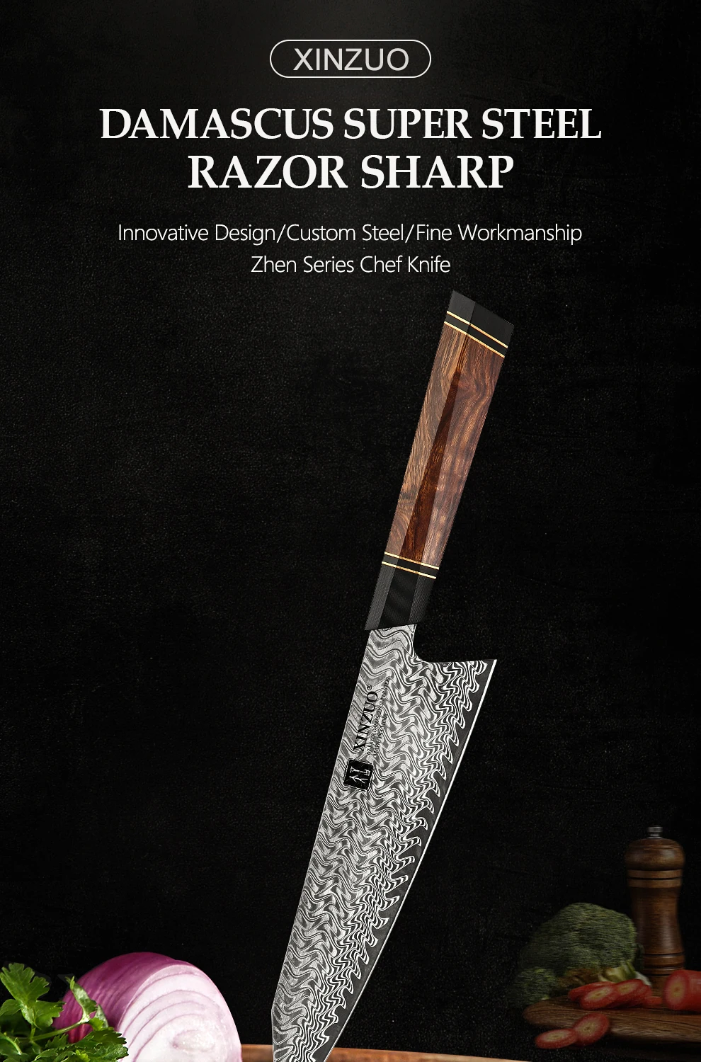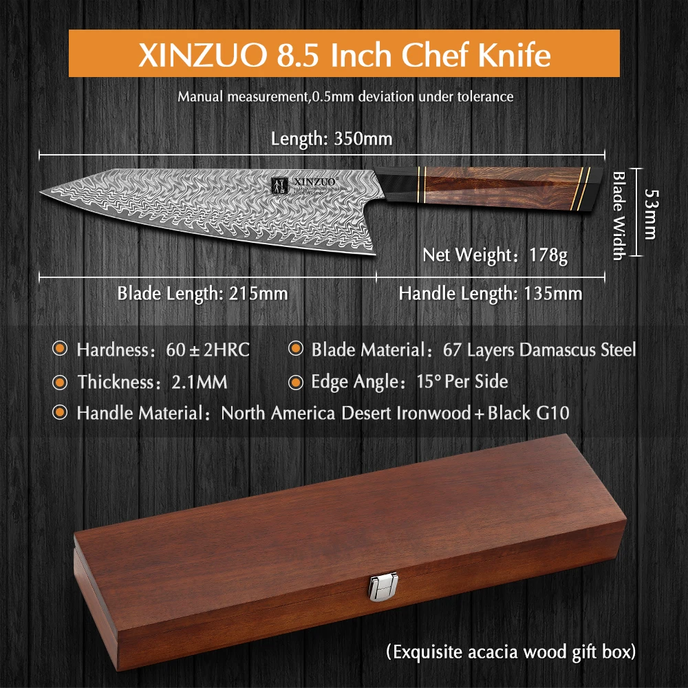 XINZUO 8,5 дюймов нож шеф-повара с деревянной подарочной коробкой VG10 Дамасская сталь кухонный нож шеф-повара кухонные ножи с ручкой G10