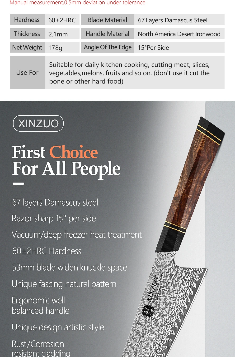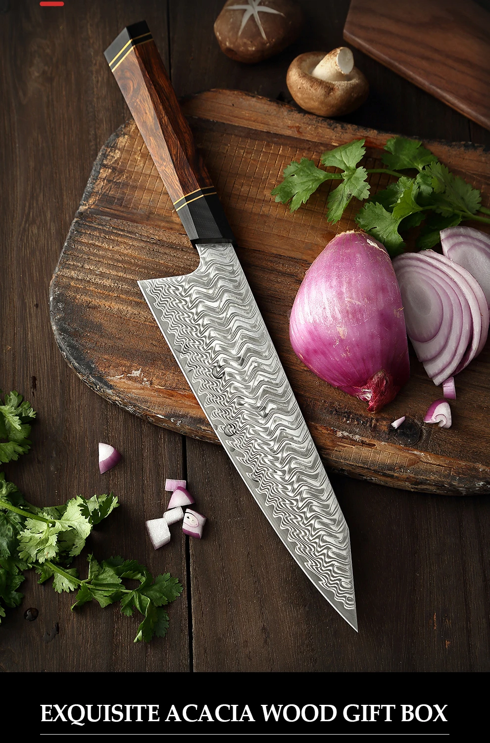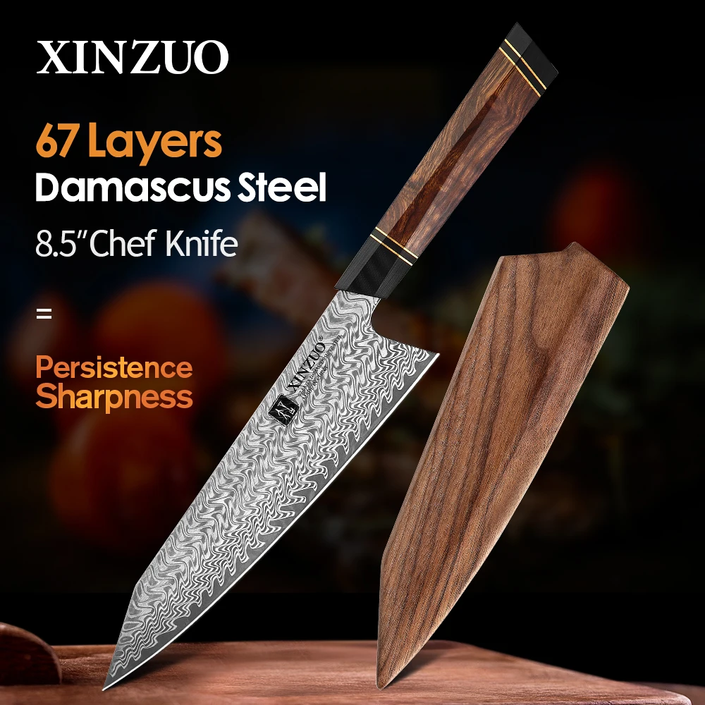 XINZUO 8,5 дюймов нож шеф-повара с деревянной подарочной коробкой VG10 Дамасская сталь кухонный нож шеф-повара кухонные ножи с ручкой G10