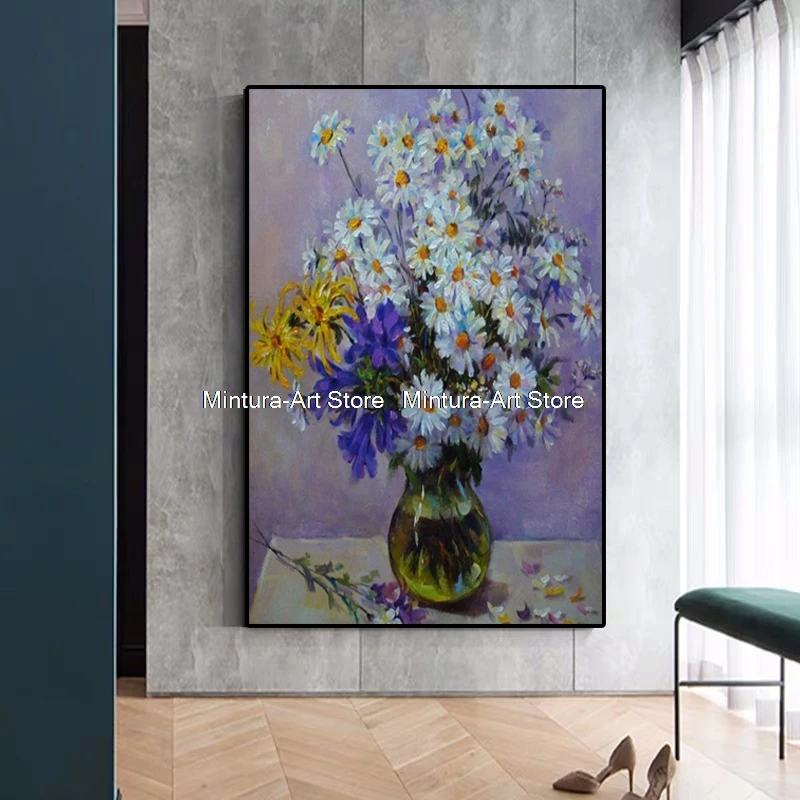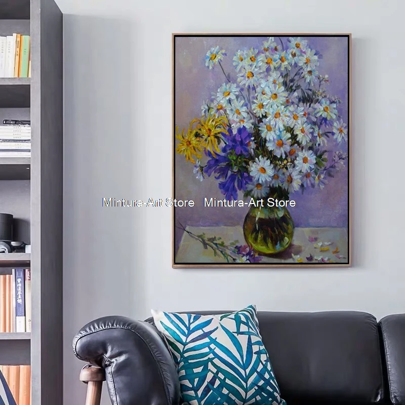 Mintura Современная ручная роспись маслом холст натюрморт ваза Маргаритка цветы настенное искусство для спальни украшение без рамки