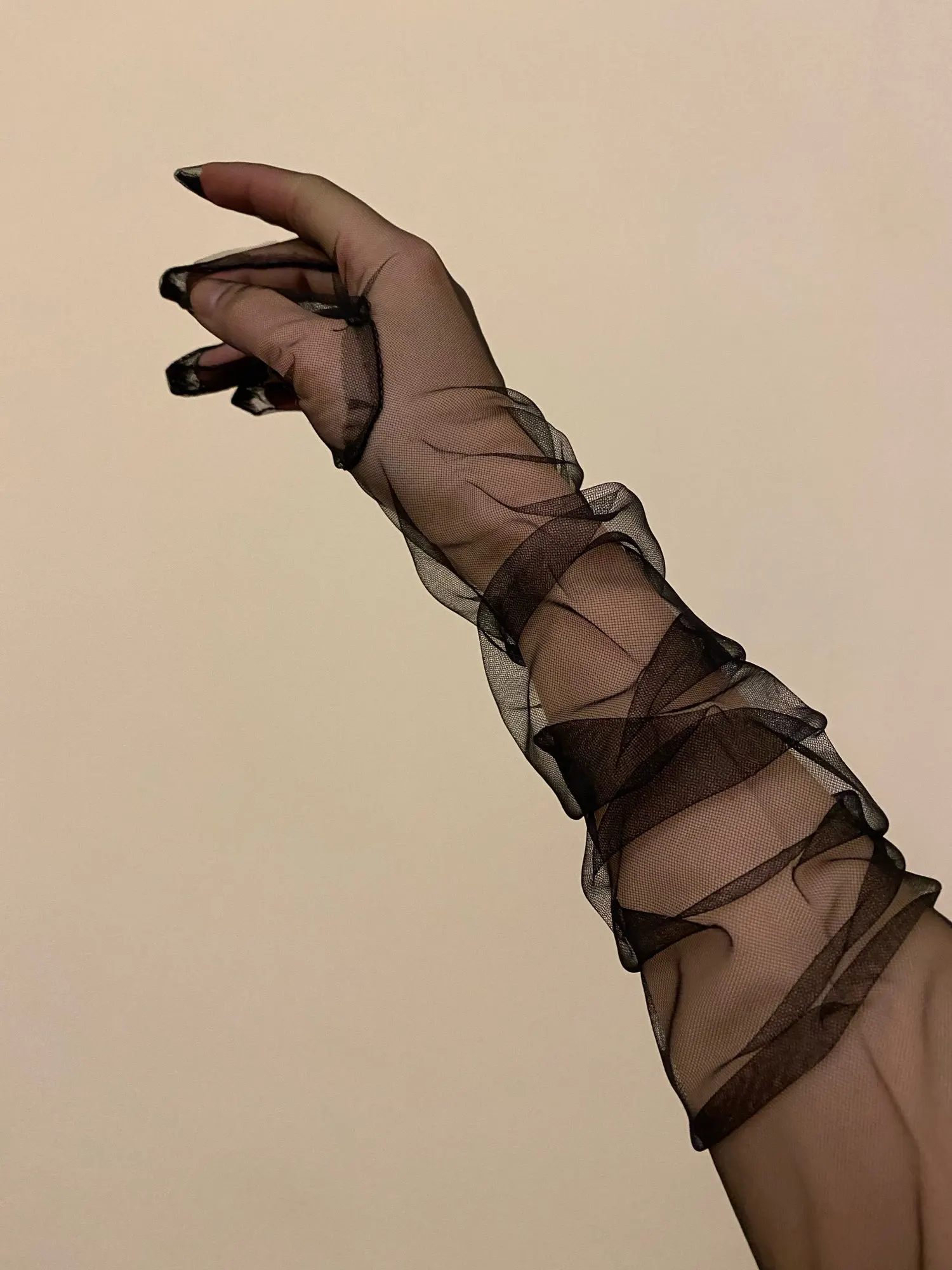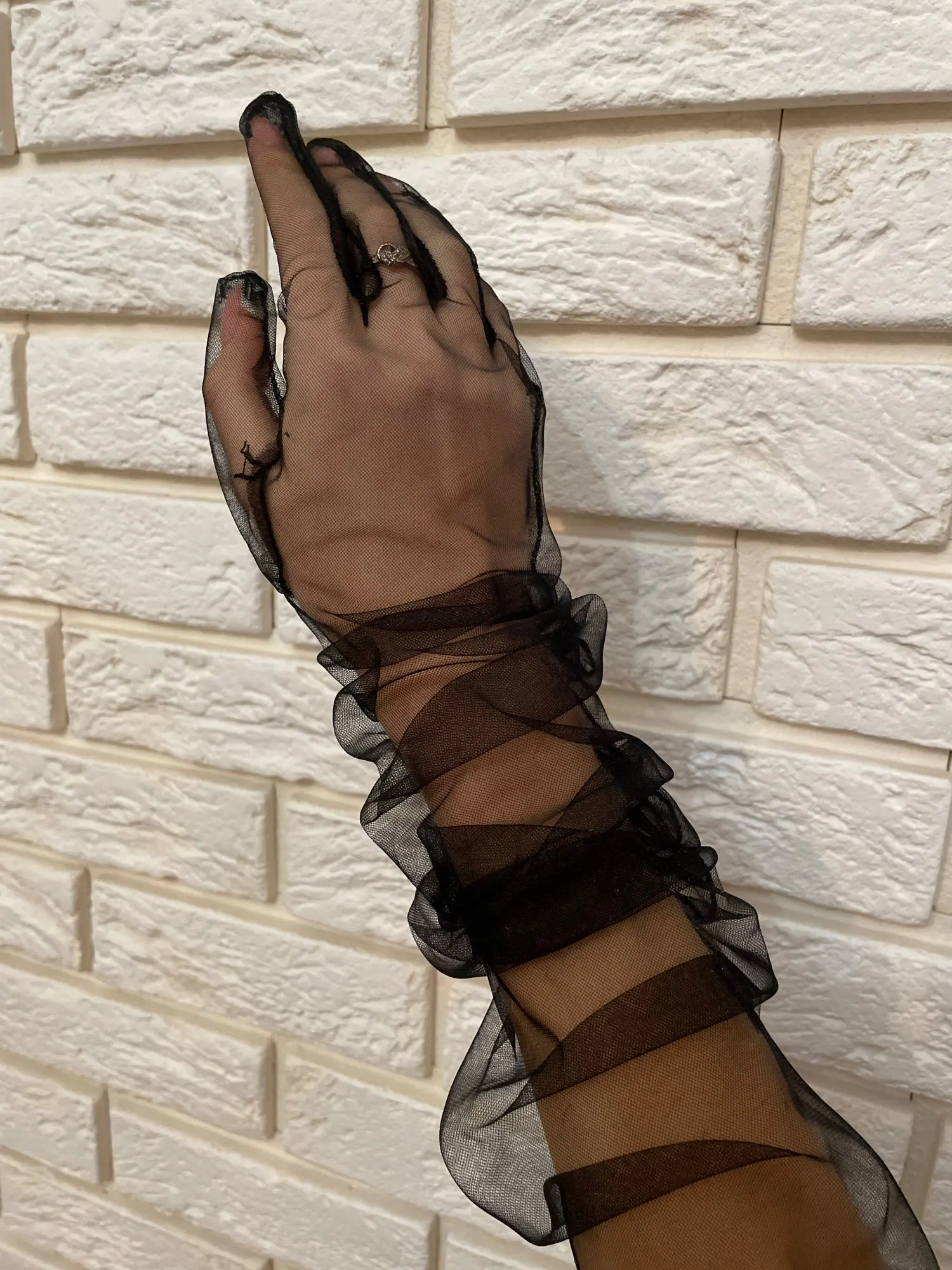 аккуратно сшиты, пальчики по размеру, у меня 8 размер перчаток, ни одного лишнего миллиметра. у подруги тонкие руки, ей натянули до плеч - смотрится отпад. у меня руки полноваты, надела до локтя, присборены, но всё равно аккуратно и красиво