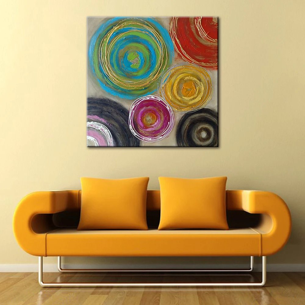 Большая Ручная роспись абстрактные современные красочные точки круги картина маслом на холсте Ручная работа Настенная картина для гостиной домашний декор
