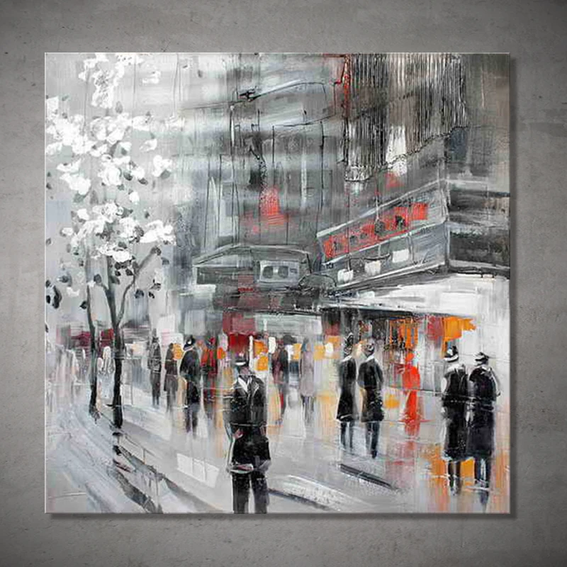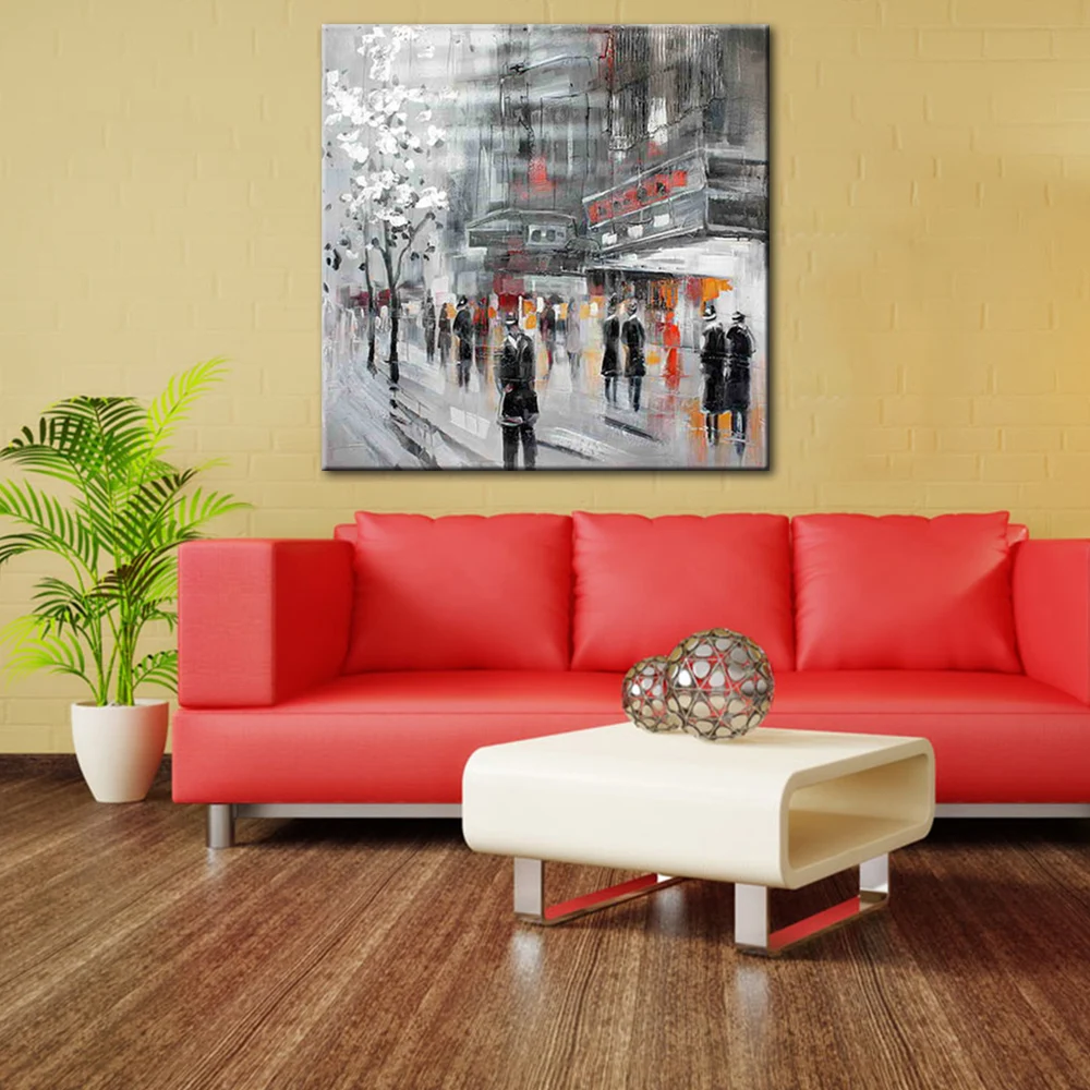 Картина маслом на холсте, без рамы, абстрактный современный пейзаж с изображением улицы Нью-Йорка, домашний декор для спальни, гостиной
