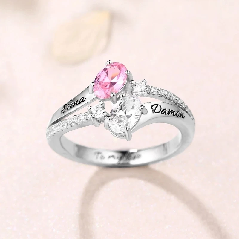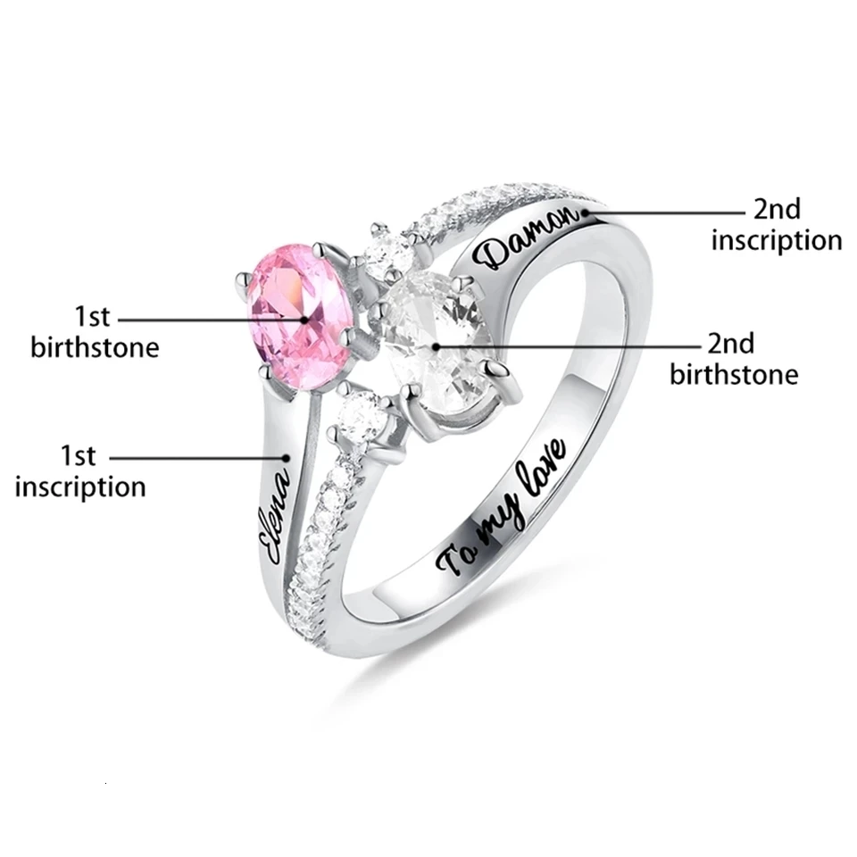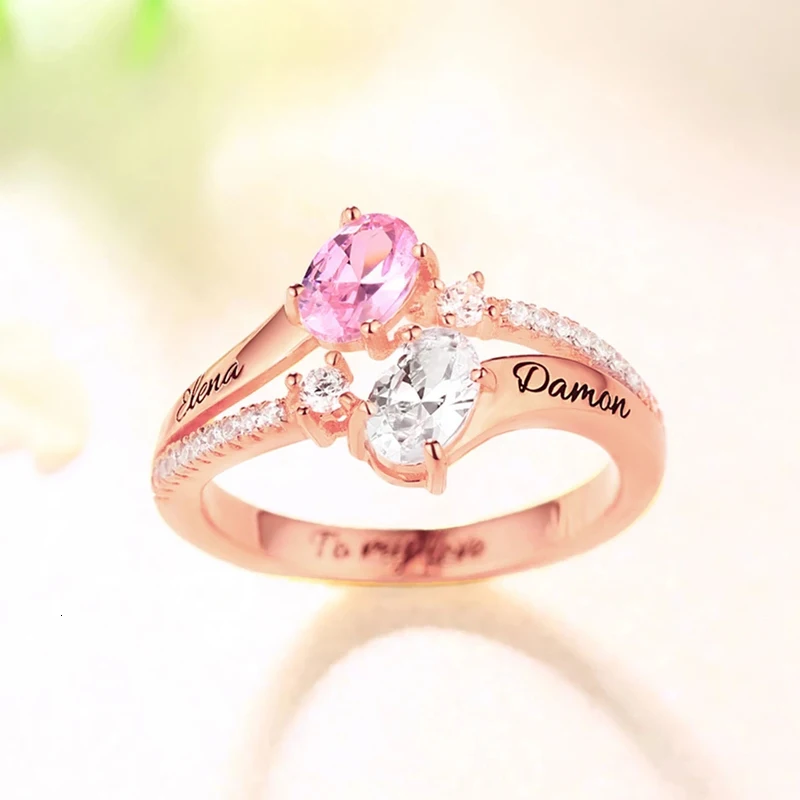 YSH Новое персонализированное 925 пробы Серебряное кольцо с резьбой по имени и камню рождения для женщин Уникальный дизайн DIY Ювелирные изделия на заказ подарок Бесплатная доставка