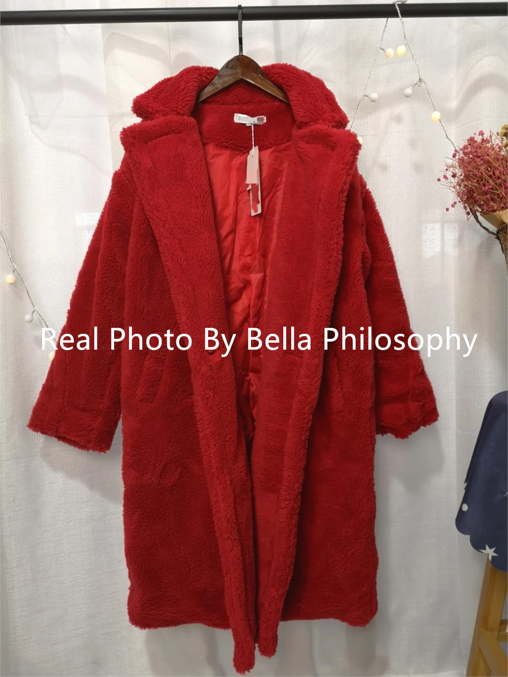 JuneLove Женское зимнее теплое длинное пальто из искусственного меха, винтажное толстое пальто с длинным рукавом и плюшевым мишкой, Повседневная Свободная верхняя одежда большого размера