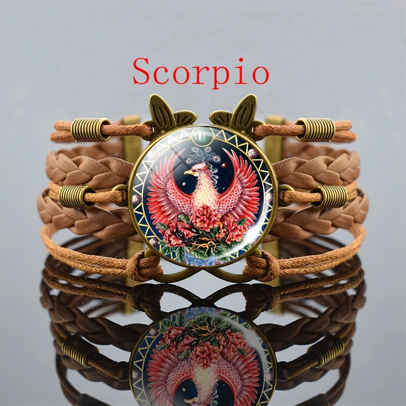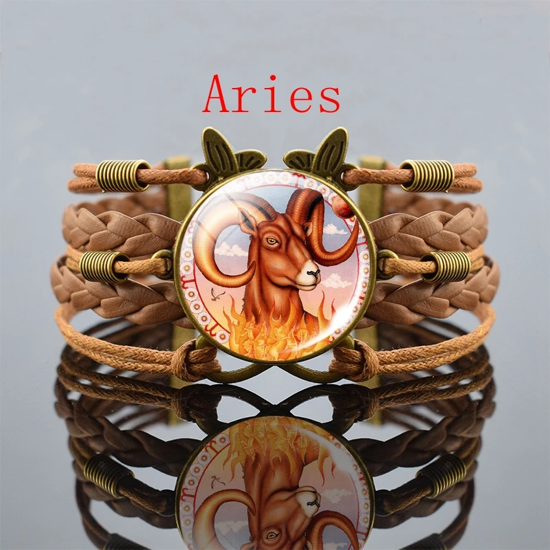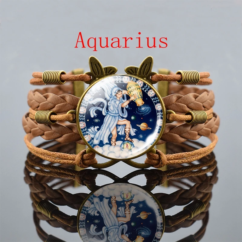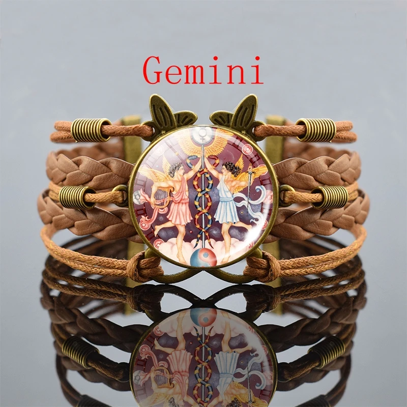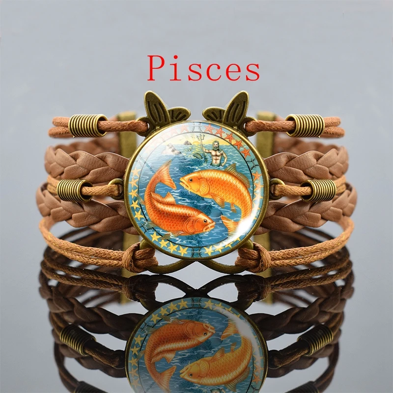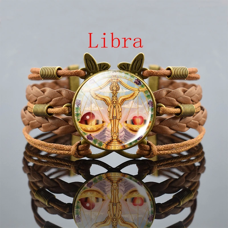 Винтажный Браслет 12 созвездий, Козерог, дева, рак, весы, Скорпион, Знак зодиака, панк, Плетеный