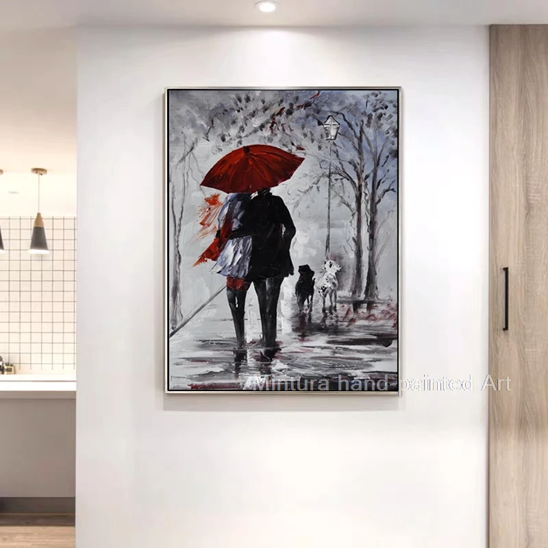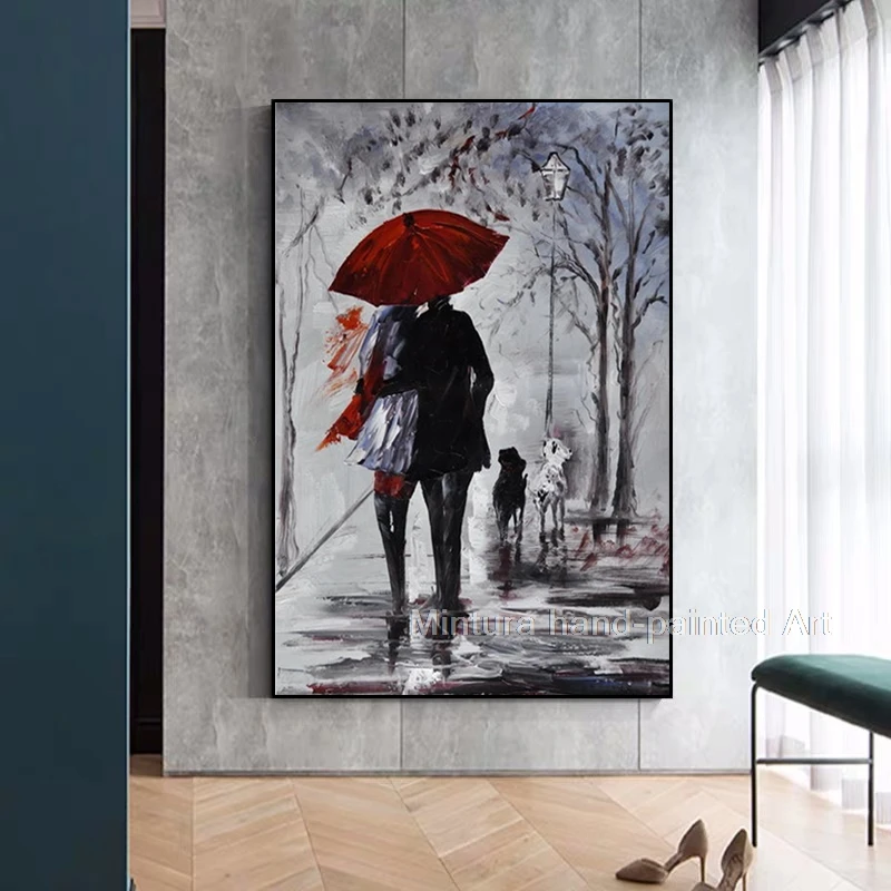 Картина декоративная масляная, настенная, без рамки, с абстрактным изображением пар, ходящих под зонтом