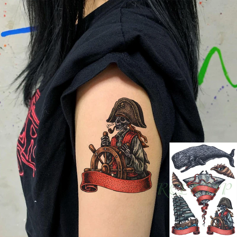Водостойкая временная татуировка-наклейка, пиратский корабль, Акула...