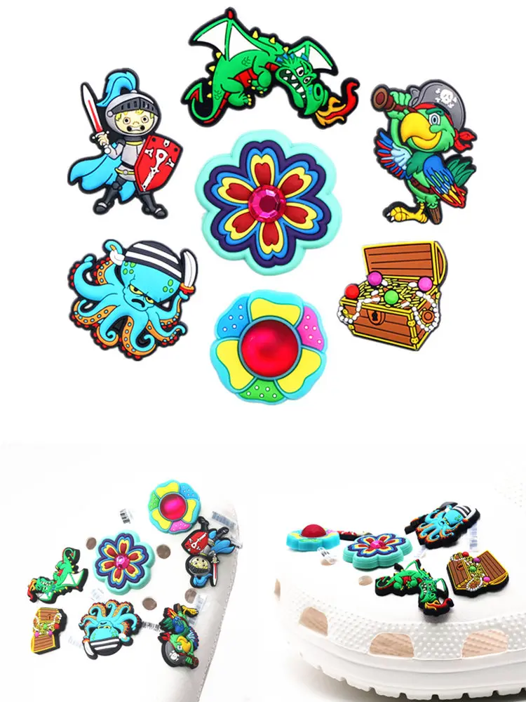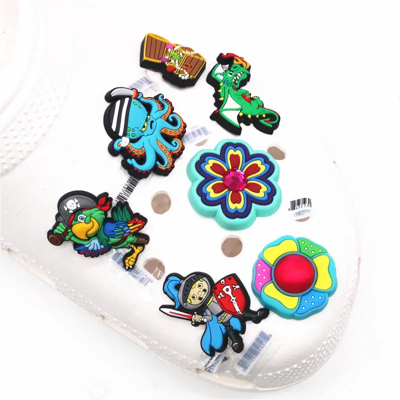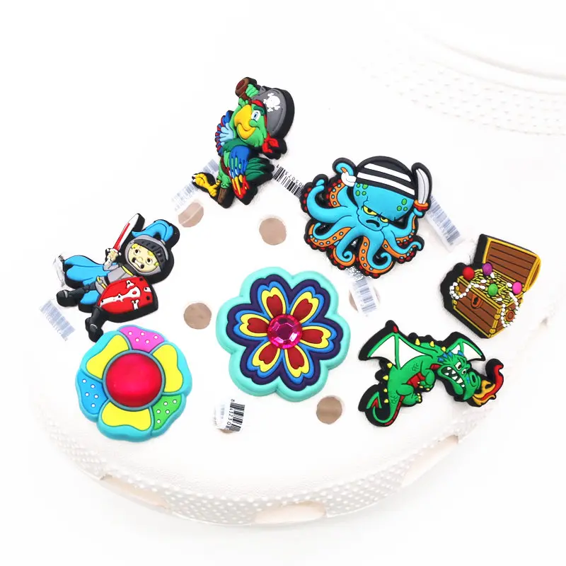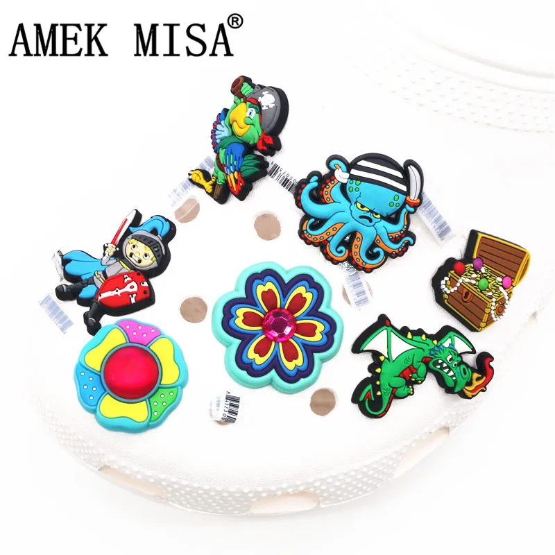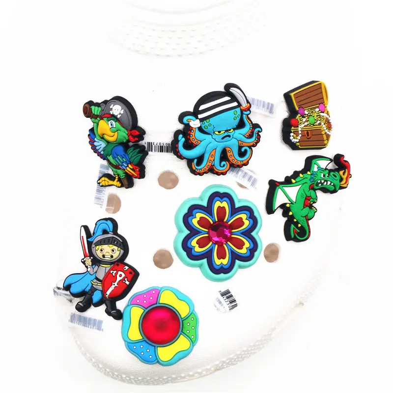 Оригинальные шармы для обуви в виде животных, 1 шт., попугай, осьминог, солдат, сокровище, украшение для обуви из ПВХ, аксессуары JIBZ, подходят для кроксов, подарок для детей