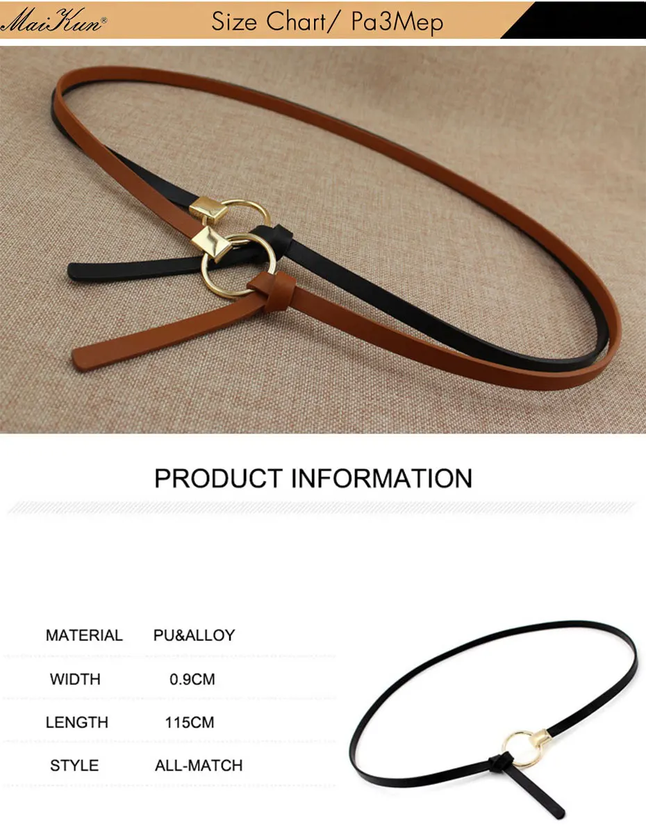 Maikun студенческое платье повседневное украшение ремень многоцветный кольцо завязанный Дамский Пояс из искусственной кожи