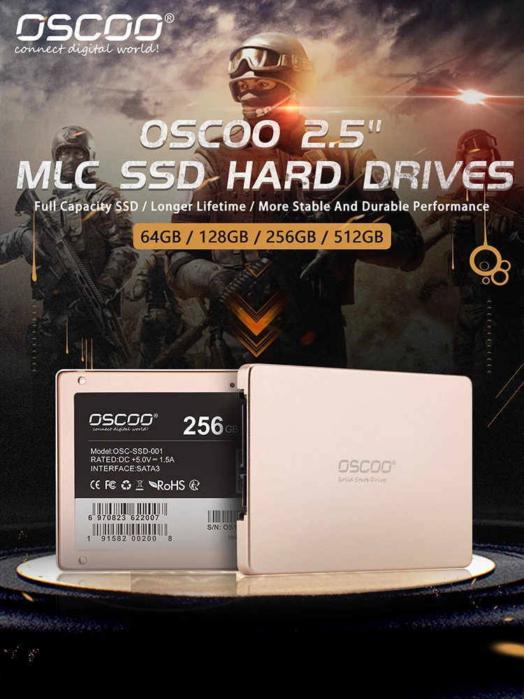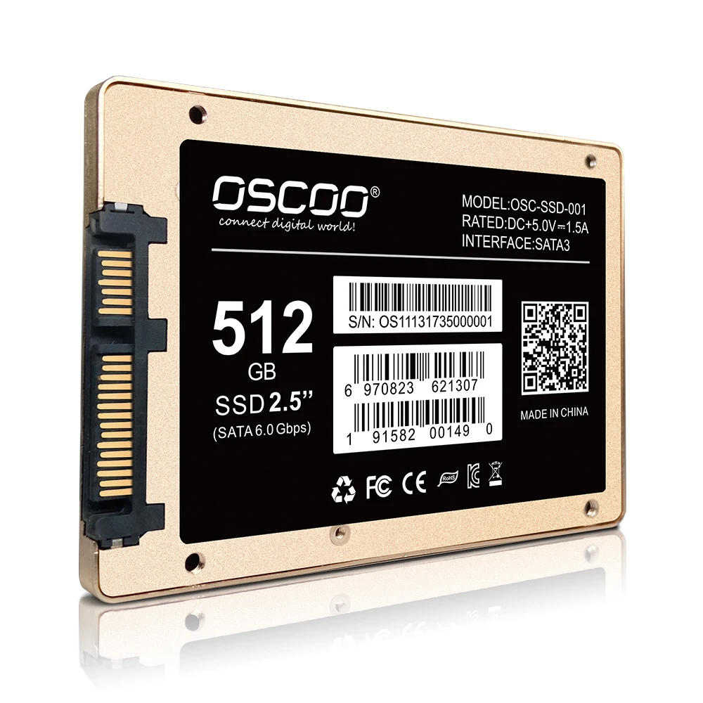 OSCOO 2,5 дюймовый Золотой серии MLC SSD для Ноутбуки и настольные компьютеры внутренний жесткий диск с оригинальными MLC 2D ЧИПАМИ Высокое качество HDD Встроенный-с оригинальной MLC 2D nand флэш-чипы, более стабильная рабочая производительность и более длительный срок службы.