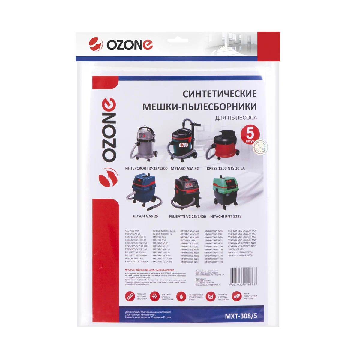 Мешки для пылесоса BOSCH GAS 25, KRESS 1400, ИНТЕРСКОЛ ПУ-32/1200, STARMIX FB20/25/35, AEG, FELISATTI, HITACHI, METABO, 5 шт., синтетические, не боятся мокрой пыли, бренд: OZONE, арт. MXT-308/5Подходит для:AEG: RSE1400 BOSCH: GAS 25 L SFC PROFESSIONAL, GAS 25 PROFESSIONAL, GAS 25 EIBENSTOCK: DSS 25 M, DSS 25 A, DSS 1225 A, SS 1200, DSS 1225, DSS 35 M IP FELISATTI: AS20/1200, VC25/1400 HITACHI: RNT 1225 KRESS: 1200 RS 32 EA, 1400 RS EA, 1200 NTS 20 EA, 1400 RS EA SET MAFELL: S25, S35M METABO: AS 1200, ASR 2025, ASA 32 L, ASA 1202, ASA 2002, ASR 35 M AUTOCLEAN, AS 20 L, ASR 25 L, ASA 2025, ASA 1201, ASR 35 L AUTOCLEAN RIDGID: V-1225 STARMIX: GS T-1120 RT, HS A-1432 EWS, ISC ARDL-1425 EW COMPACT, NTS ESWIFT 1220 HK, ISC ARDL-1425 EWS COMPACT, NTS ESWIFT 1220, ISC ARMP-1425 EWP COMPACT, ISC ARD-1425 EWS, ISC ARMP-1425 EWP, ISP ARH-1035 ASBEST EW, GS L-1220 HMT, GS 1020, AS A-1220 EH+, HS A-1420 EH, GS 1022 HZ PLUS, ISP IPULSE ARDL-1435 EWS, GS LD-1232 HMT, ISP IPULSE ARH-1435 EWA ASBESTO PERMANENT, ISP IPULSE ARDL-1635 EWSA PERMANENT, ISP ARM-1435 EW, ISC ARMP-1625 EWP COMPACT, NTS ESWIFT 1232, ISP IPULSE ARM-1635 EWA PERMANENT, GS 1032, HS AR-1420 EWS, ISP ARD-1435 EWS, GS L-1232 HMT, HS AR-1432 EWS, AS 1020 PH, NSG UCLEAN LD-1435 PZ, AS AR-1232 EH+, ISP IPULSE ARH-1635 EWA PERMANENT, HS AR-1635 EWS, ISC ARD-1425 EW, ISP IPULSE ARH-1435 EW, AS 1232, ISC ARM-1425 EW, AS A-1232 EH+, NSG UCLEAN LD-1420 HMT, HS AR-1420, NSG UCLEAN LD-1432 HMT, GS 1032 HK, GS 1032 ST, ISP IPULSE ARH-1035 EW ASBEST, NSG UCLEAN ADL-1432 EHP, GS L-1435 PZ, ISC ARM-1625 EWA COMPACT, GS 1022, AS 1220 P+, GS 1020 HK, ISC ARM-1425 EW COMPACT, ISP IPULSE ARM-1435 EW, ISC ARDL-1425 EWSA, AS 1232 PG+, AS 1220, ISC L-1425 BASIC, ISP ARH-1435 EW, NSG UCLEAN ARDL-1435 EHP, NSG UCLEAN ARDL-1432 EHP, NTS ESWIFT 1232 HK, NSG UCLEAN ADL-1420 EHP, ISC ARDL-1625 EWS COMPACT UNITEC: CS 1225 ИНТЕРСКОЛ: ПУ-20/1000, ПУ-32/1200Если вы не уверены в выборе - просим связаться с нами.