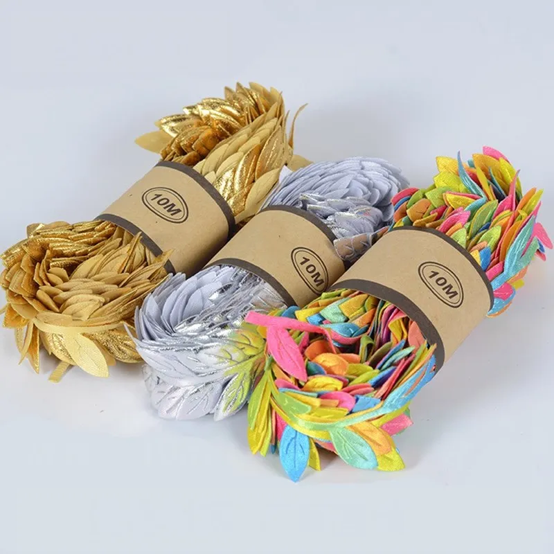 1,5 см Золотой Серебряный лоза листья цветок кружевная ткань отделка для DIY Carft швейная аппликация Воротник Свадебный декор лента 10 млот