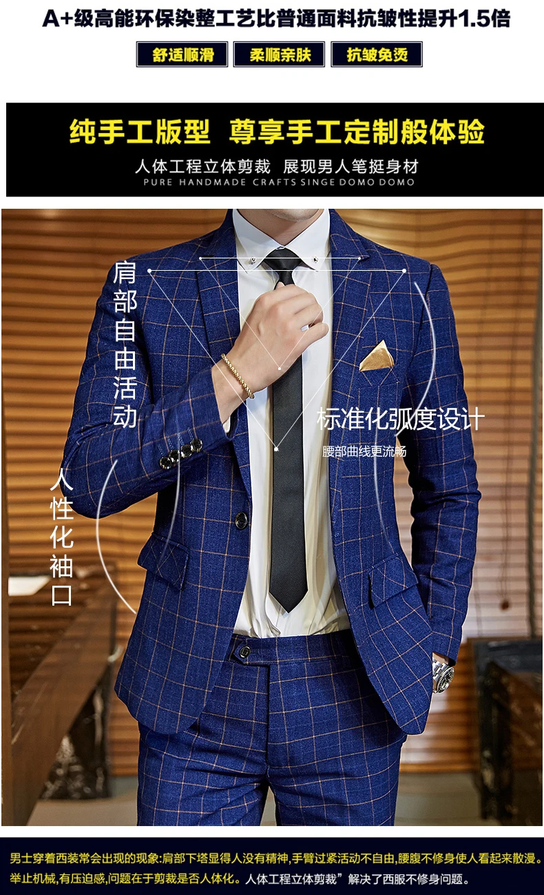 Костюм свадебный мужской из 3 предметов, облегающий клетчатый костюм, блейзер для жениха, брюки, деловая одежда для работы, костюмы азиатских размеров
