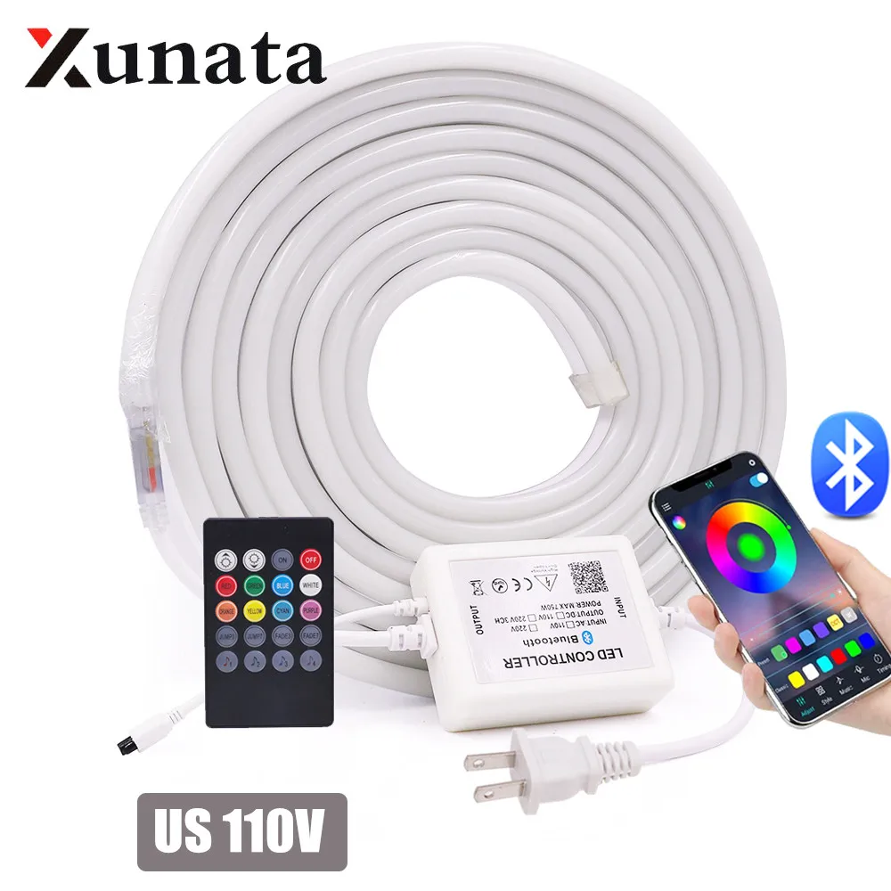 Гибкая неоновая светильник ная лента 5050 RGB, вывеска, ночное освещение, музыка, лампа с управлением Bluetooth, Светодиодная лента 110 В-130 В, 1 м-100 м