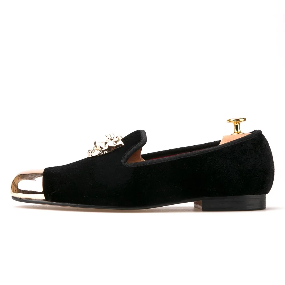 Мужские лоферы новый стиль Тигровая пряжка с золотым носком мужские бархатные туфли ручной работы для вечеринки и свадьбы роскошные мужские классические туфли на плоской подошве