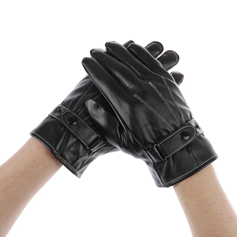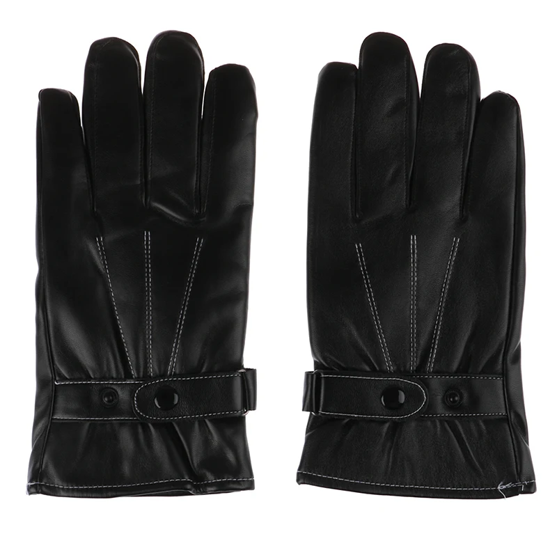Мужские зимние теплые варежки из искусственной кожи, кашемировые ветрозащитные перчатки на пуговицах для улицы, роскошные перчатки для вождения, Luvas Motociclismo