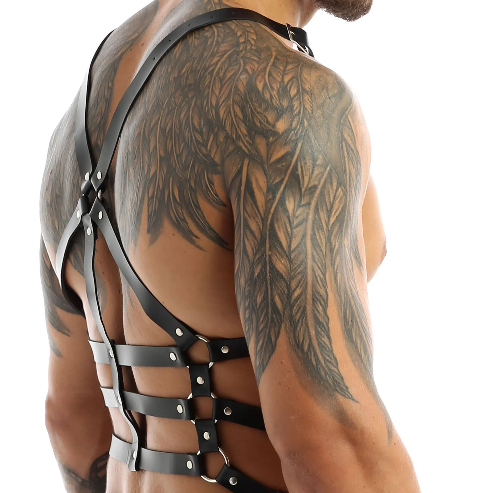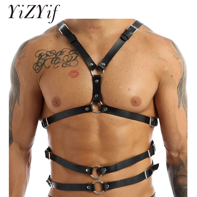 Мужской регулируемый нагрудный ремень для тела ремни ремень. Изготовлен из высококачественной искусственной кожи с металлическими деталями, прочный для повседневного использования. Дизайн с регулируемыми ремешками с пряжкой на талии/плече/руке, легко носить. Создание хорошо мускулированного образа, отличные и модные аксессуары. Идеально подходит для Хэллоуина, Дня Святого Валентина, костюмированной вечеринки, клубных вечеринок или ночного белья.Дружеские советы: