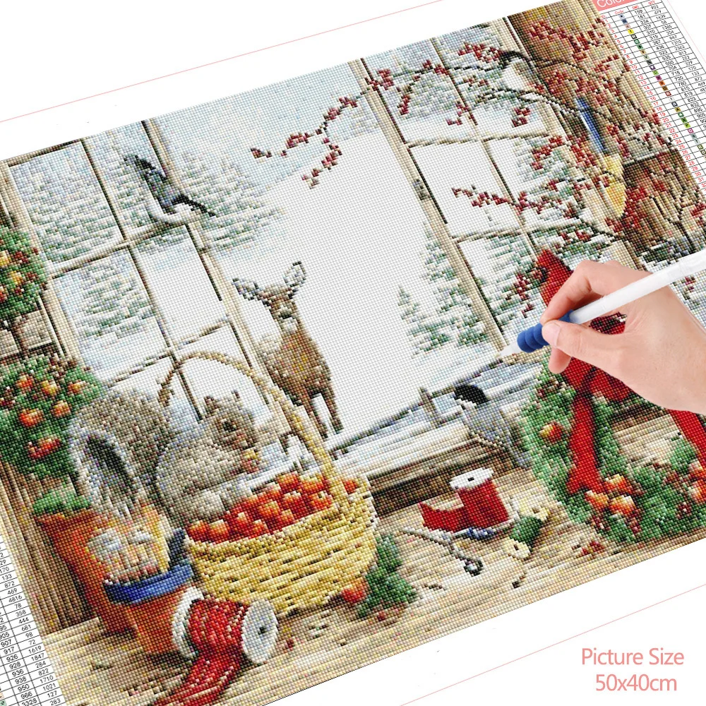 HUACAN 5D Diy бриллиантовый рисунок Рождество живописная вышивка мозаика зимнее окно пейзаж Алмазная с изображением Птицы Искусство