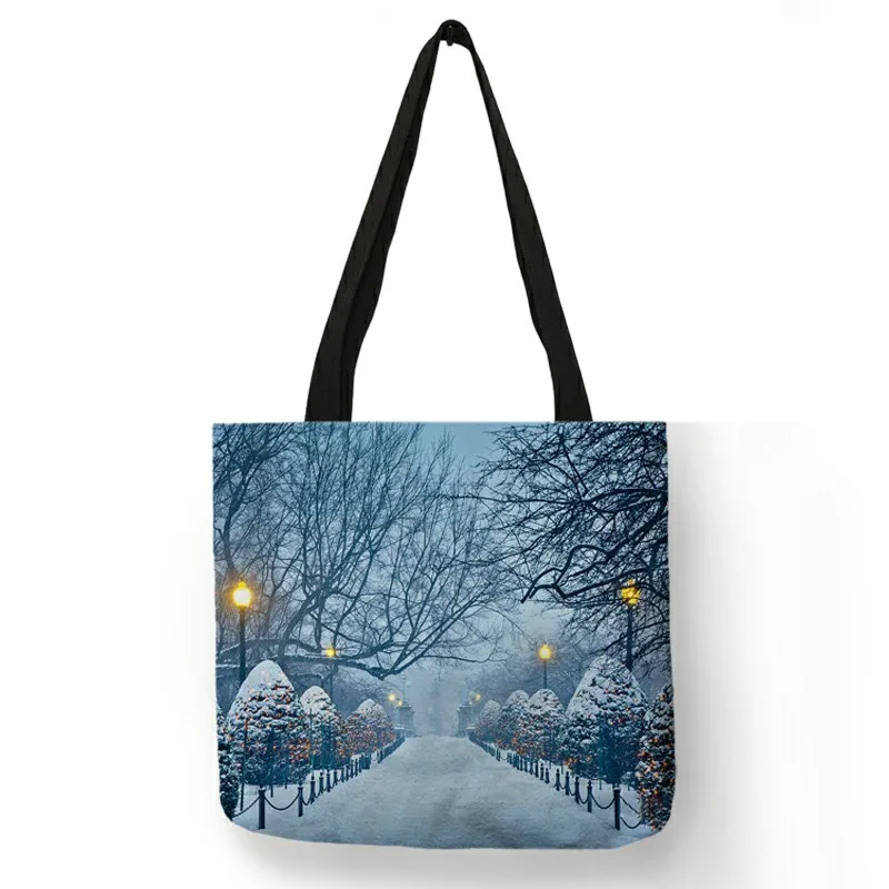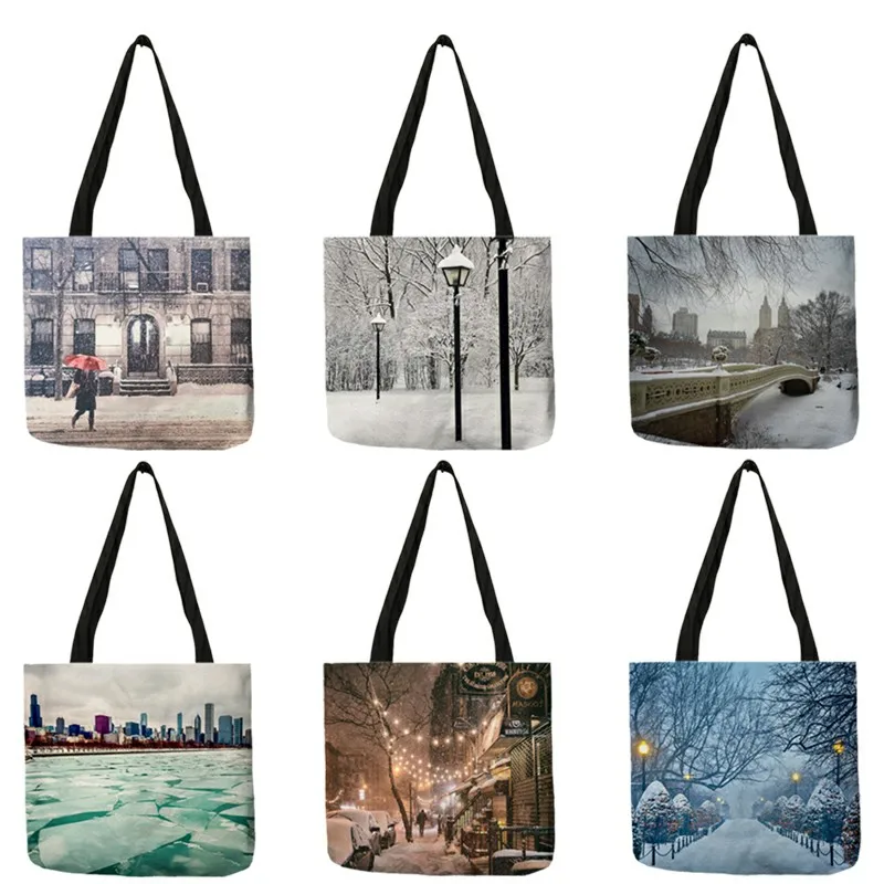 Красивая женская дизайнерская сумка с принтом в виде снежного пейзажа на новый год, Рождество 2020, сумка-тоут, сумка через плечо для покупок, женская сумка B13108
