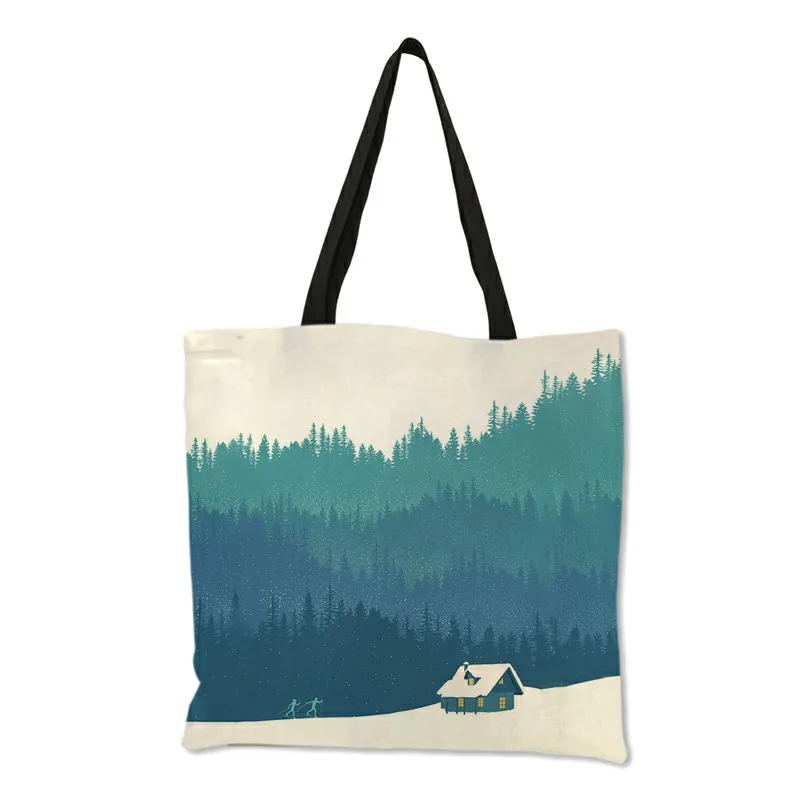 Женская сумка-шоппер, многоразовая, складная, с пейзажным принтом, ...