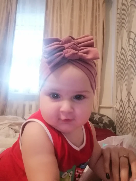 Шапочка-тюрбан детская с бантом, цвет в ассортименте