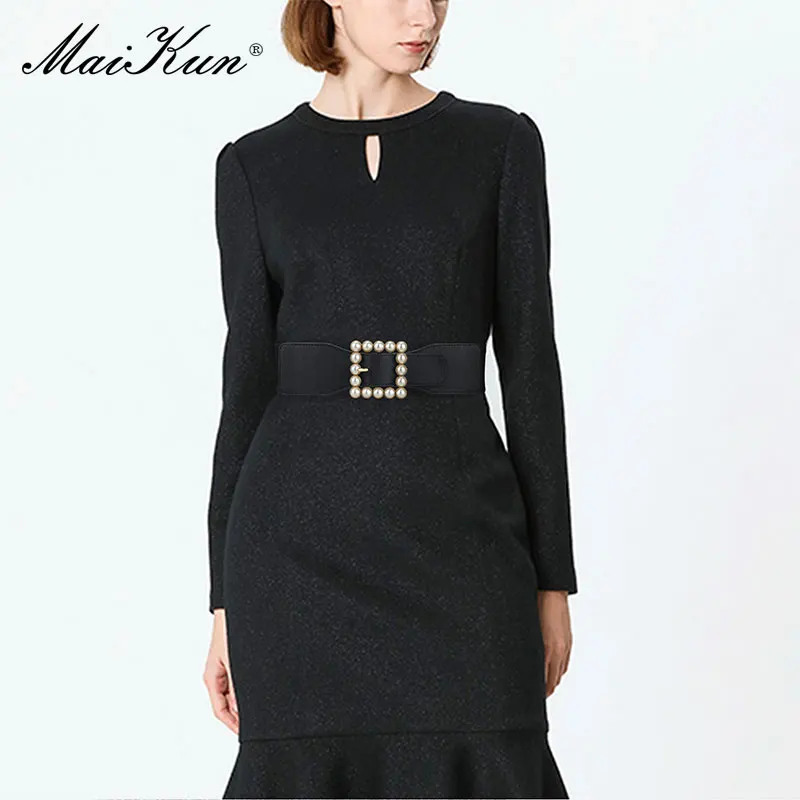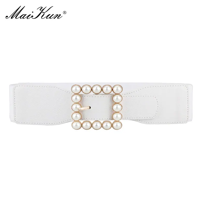 Maikun Черный Ремень Эластичный Универсальный Белый Жемчужный Пояс Женский Украшение Ремни Для Юбки Платья Одеждов Широкой Юбки