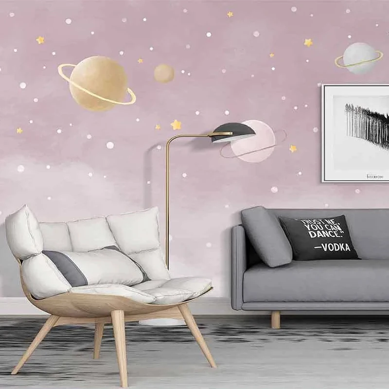 3D-обои на заказ, Скандинавская роспись вручную, розовое звездное небо, романтические облака, Настенная роспись для девочек, детской комнаты, настенная живопись