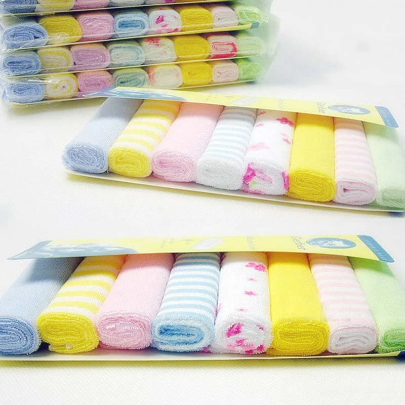Есть восемь небольших квадратных полотенец, их можно использовать как полотенца для кормления, нагрудники и т. Д., цвет очень приятный, каждый из них не тот же цвет, легко отличить от других.