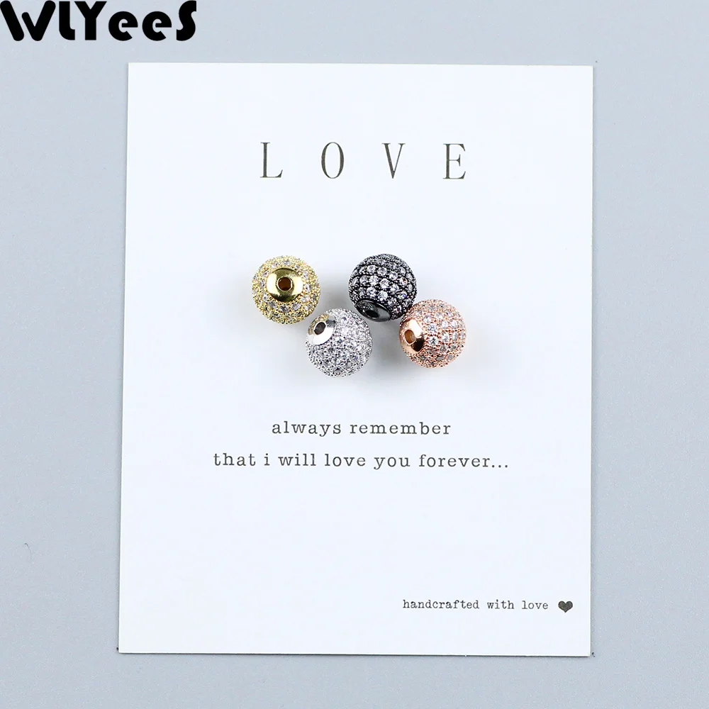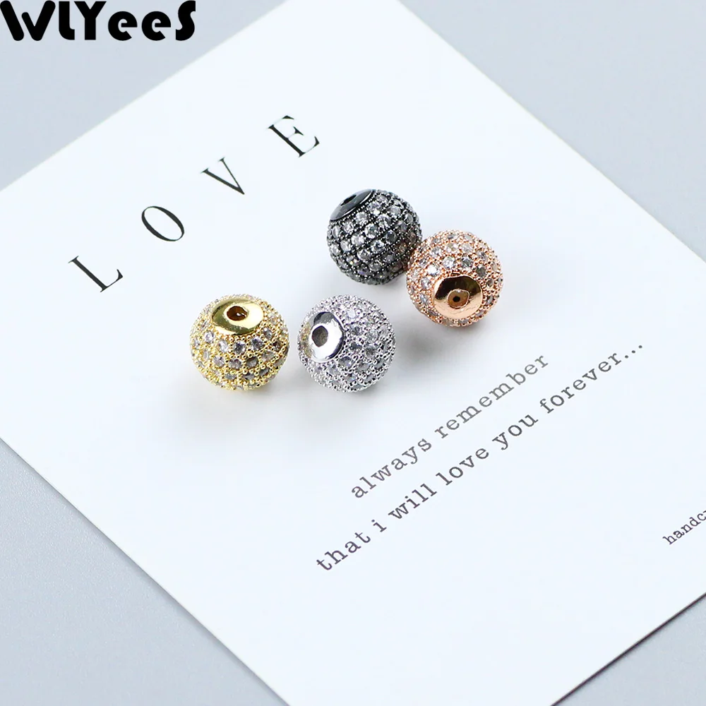 Металлический медный шарик WLYeeS диаметром 6, 8, 10 мм с микро-инкрустацией из белого кристалла с фианитами, круглый шар из свободные бусы шармы металла для ювелирных изделий, браслетов, сережек, сделай сам